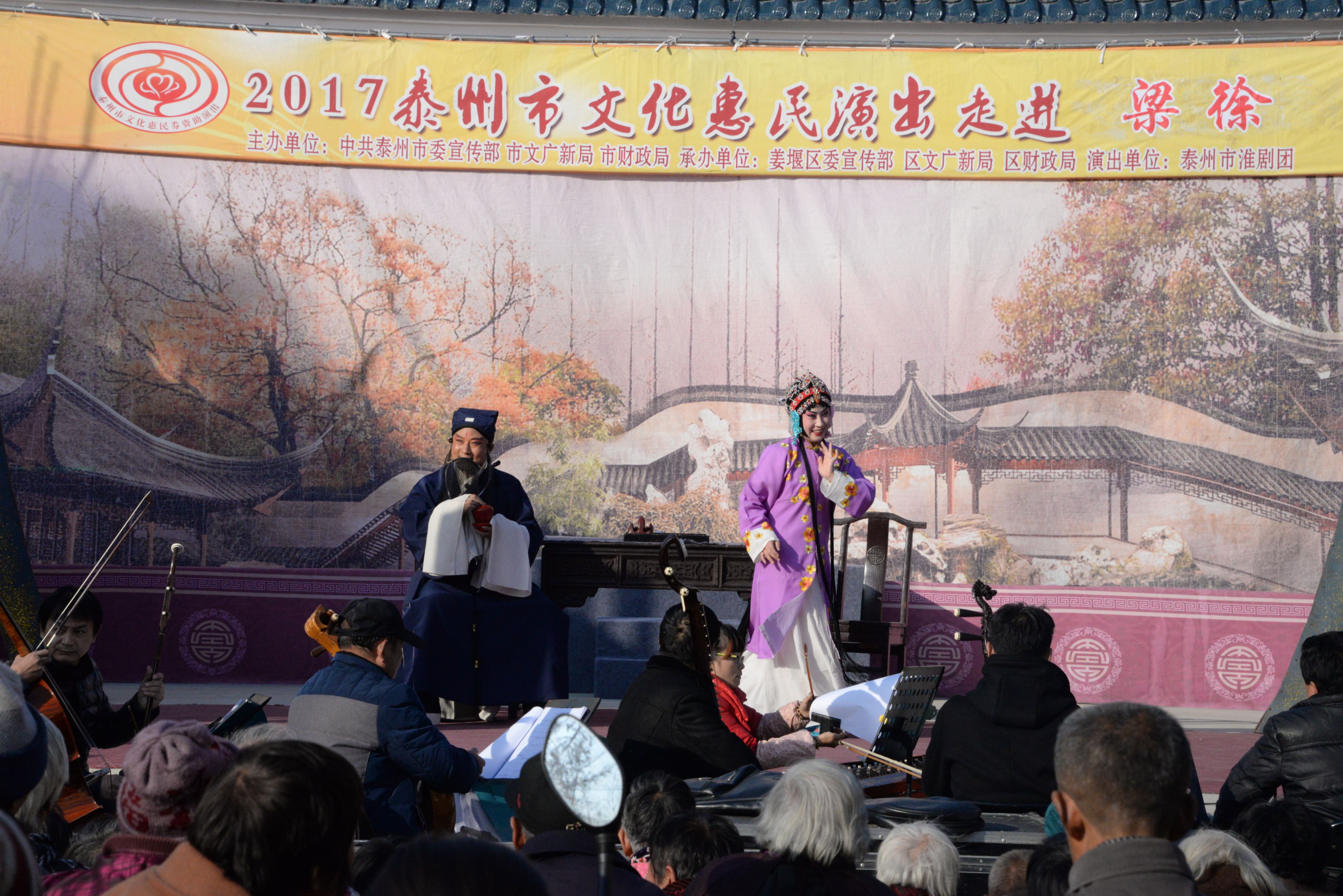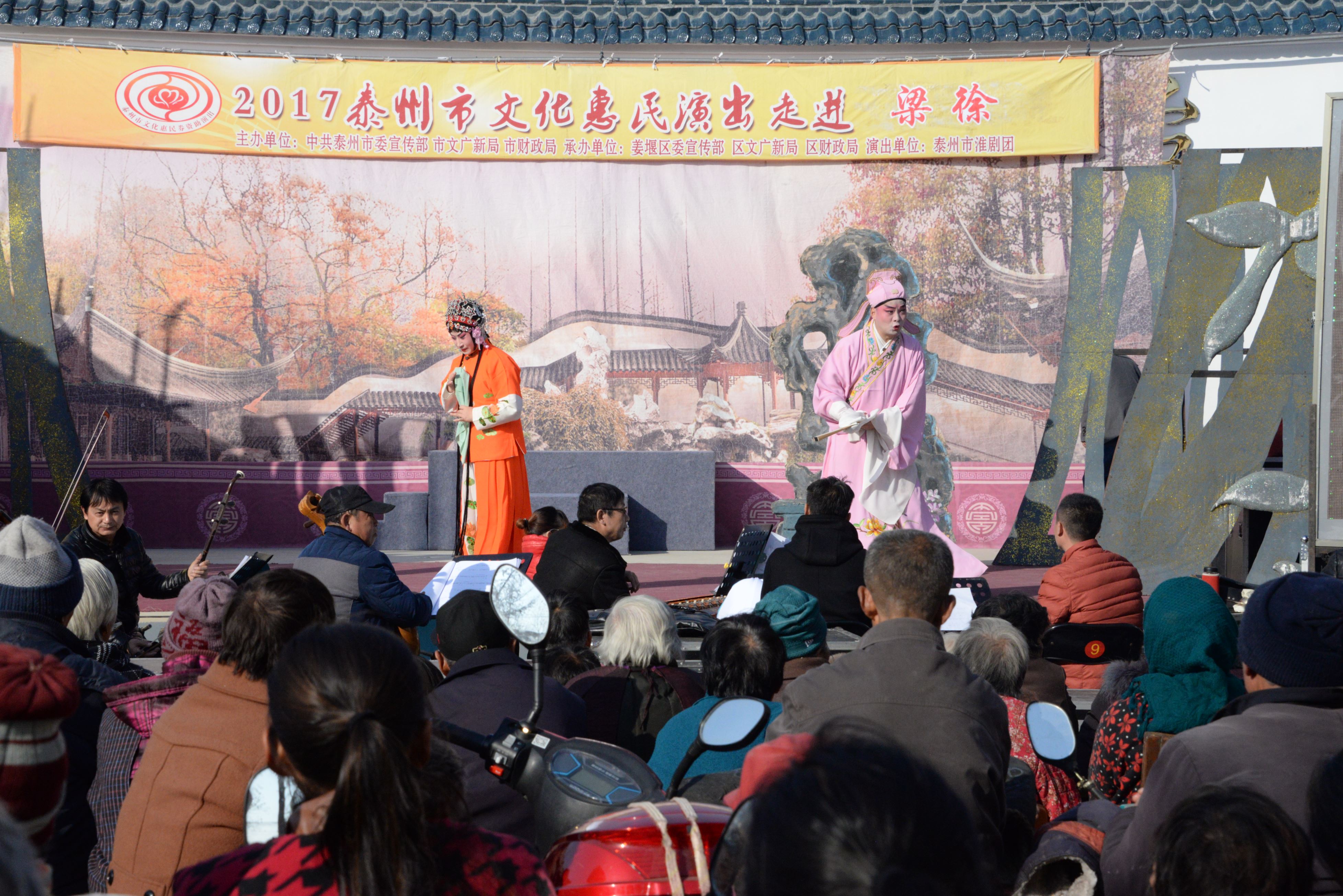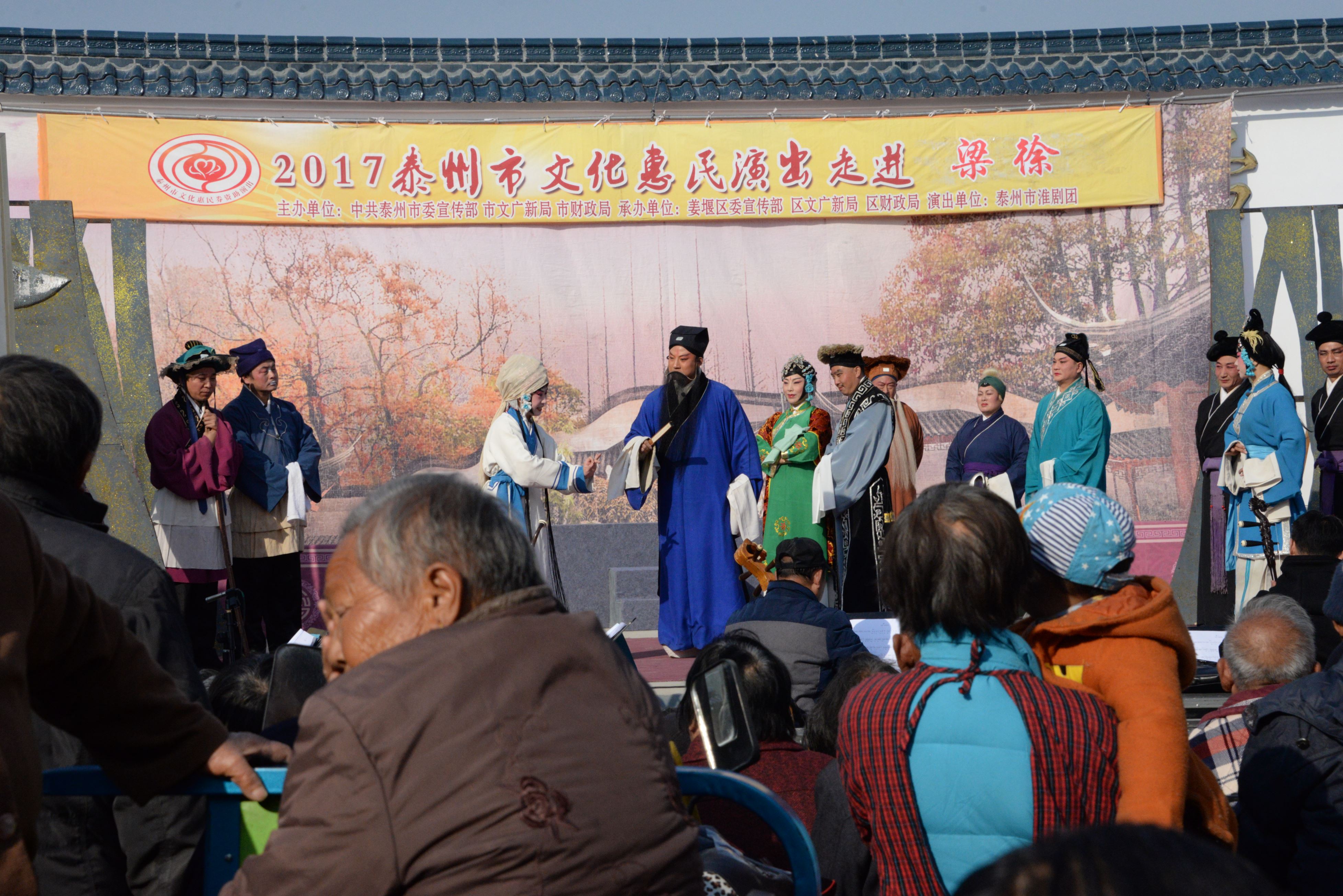 泰州市淮剧团2017年11月16日应姜堰区梁徐镇的邀请为新九村居民带来的一台大型优秀经典淮剧《阎惜姣》剧中人物的性格特性鲜明,是一部反映忠、孝、节、义比较显著特点的剧目,全场数千观众在短短两个半小时的演出中多达数十次的掌声是对剧本给予的肯定、是对所有舞台上演职人员精彩表演的肯定,今后我们团将积极创作更多的精品力作为基层百姓服务,做到每部戏能让观众在欣赏中寓教于乐,努力做到能让所创作的剧目上接天线下接地气。