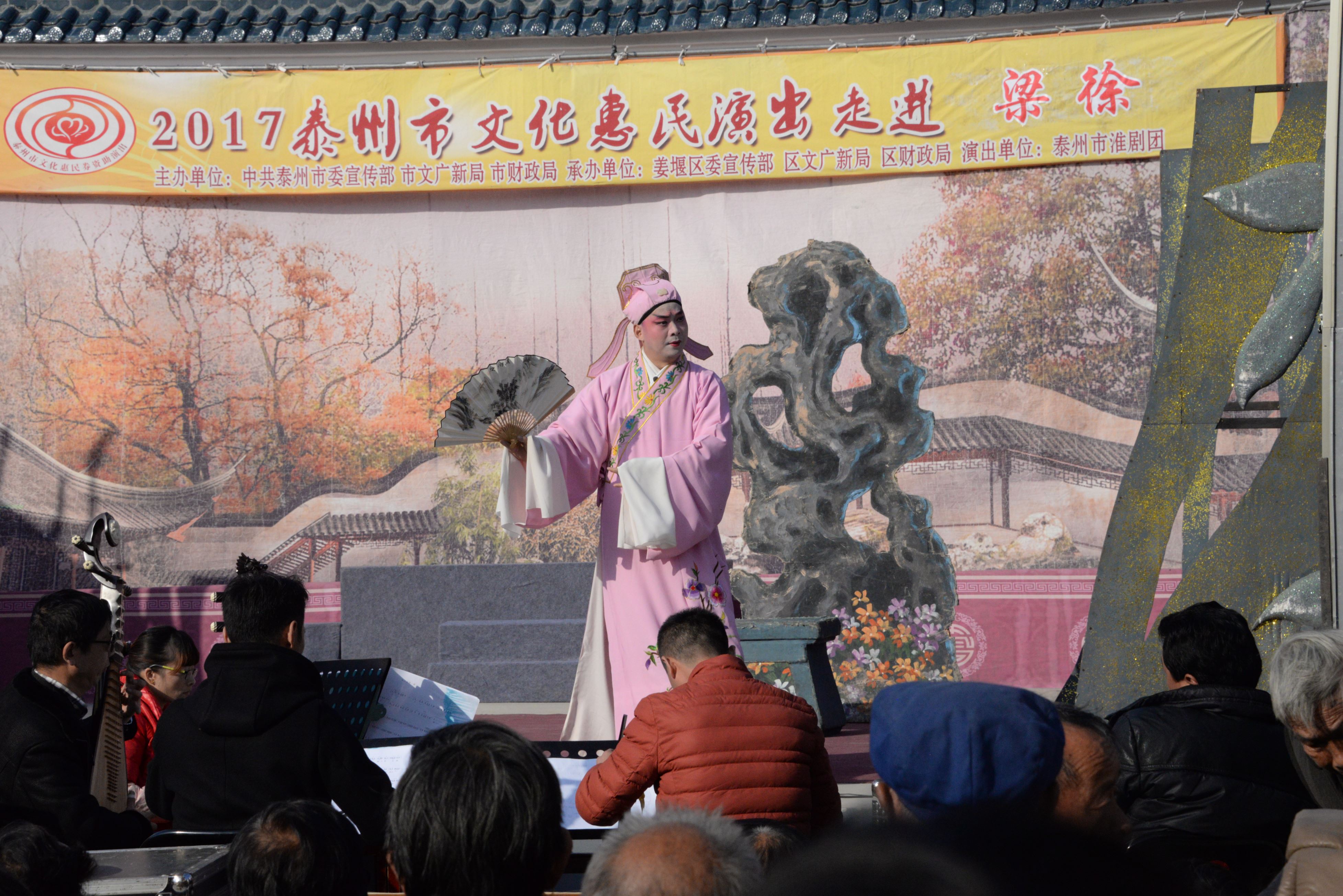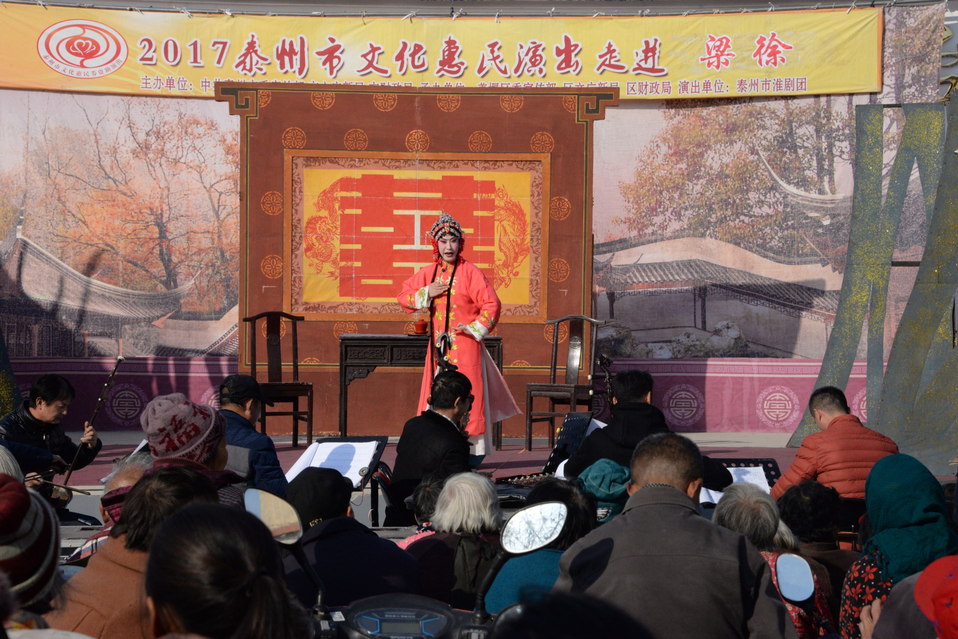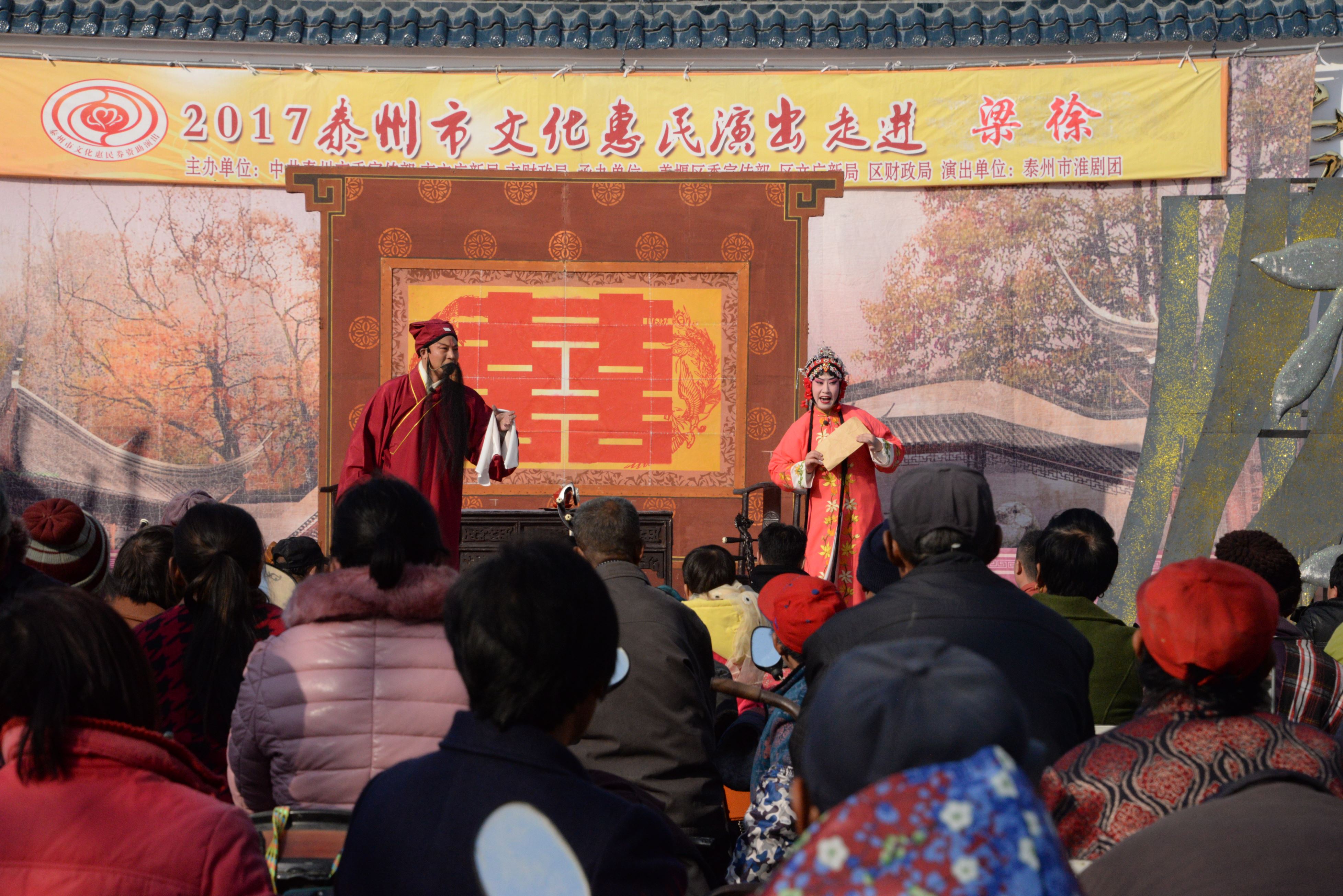 泰州市淮剧团2017年11月16日应姜堰区梁徐镇的邀请为新九村居民带来的一台大型优秀经典淮剧《阎惜姣》剧中人物的性格特性鲜明,是一部反映忠、孝、节、义比较显著特点的剧目,全场数千观众在短短两个半小时的演出中多达数十次的掌声是对剧本给予的肯定、是对所有舞台上演职人员精彩表演的肯定,今后我们团将积极创作更多的精品力作为基层百姓服务,做到每部戏能让观众在欣赏中寓教于乐,努力做到能让所创作的剧目上接天线下接地气。