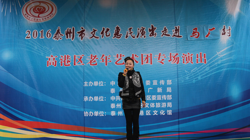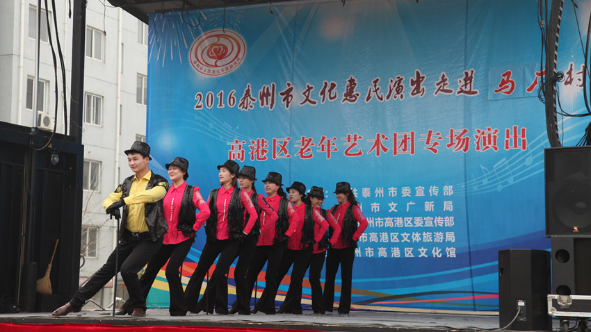2016年2月23日高港区老年艺术团文化惠民走进许庄马厂社区,老年艺术团专场文艺演出活动在马厂社区文化广场拉开序幕,整场安排了17个节目,演出时长1小时42分,节目类型包括舞蹈、独唱、小品、器乐、情景剧豫剧等,现场观众约1500人,演出效果较好,得到广大群众一致好评!