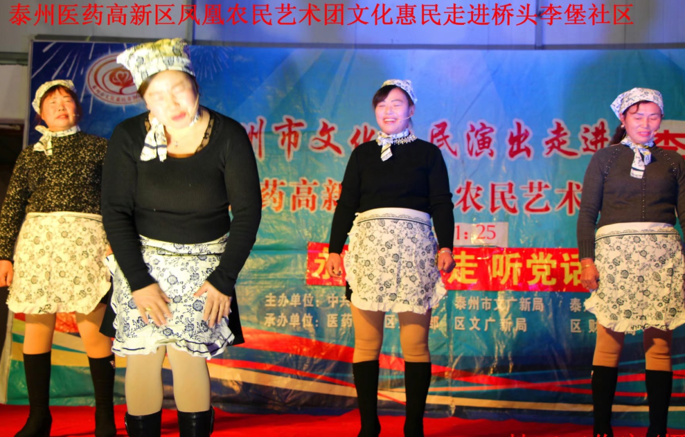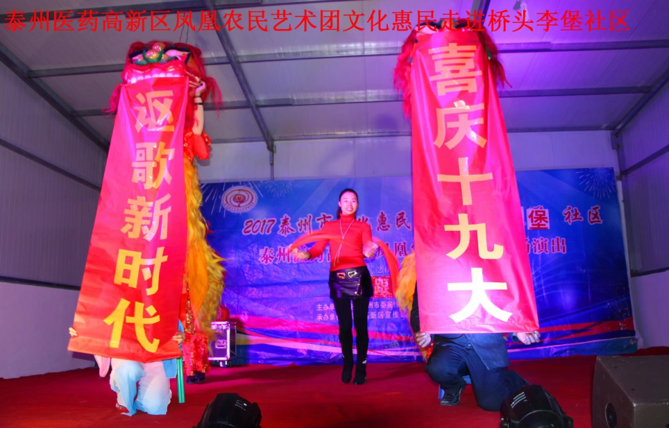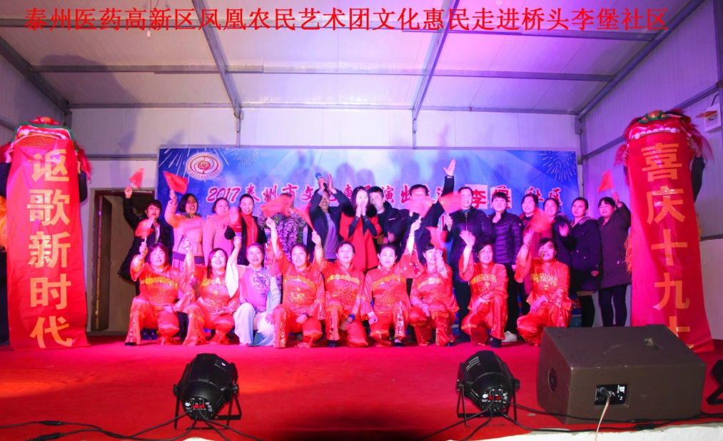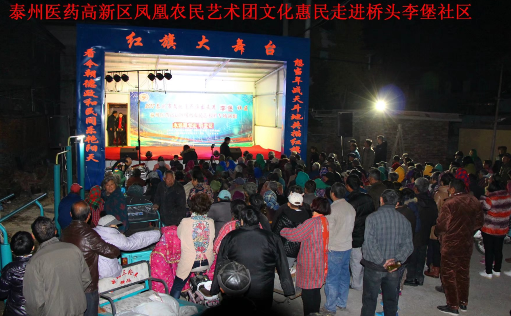 泰州凤凰农民艺术团受桥头镇李堡村邀请来到桥头镇李保村举行了一场文化惠民演出活动,整场文艺演出节目丰富多彩、主题鲜明,以群众喜闻乐见的音乐、快板书、朗诵和歌舞等演出形式,宣传党的十九大精神和精准扶贫政策,向群众传递开展新民风建设的意义和内涵,精彩的节目赢得了现场观众的阵阵掌声。