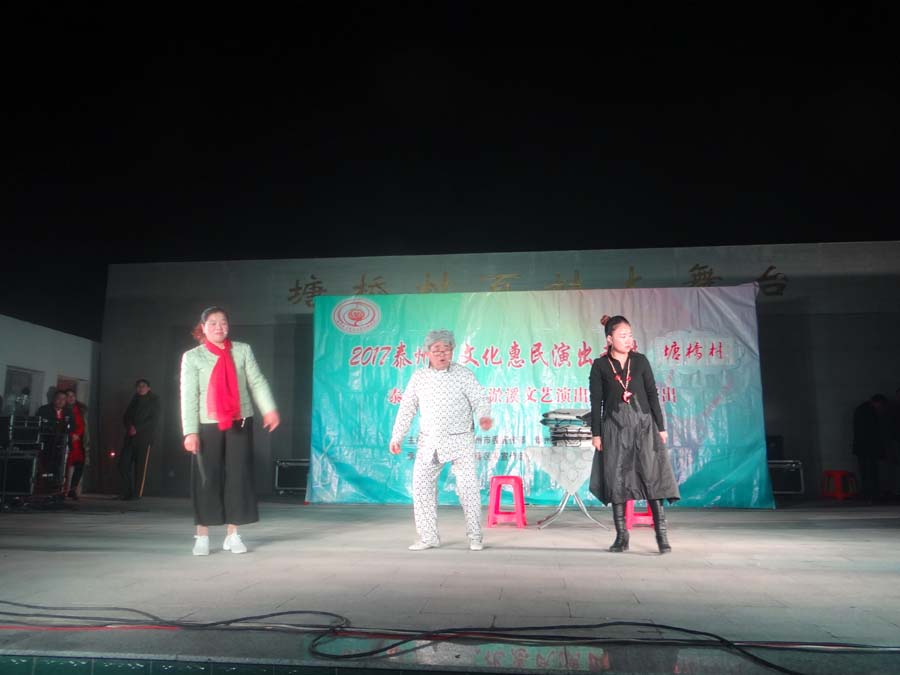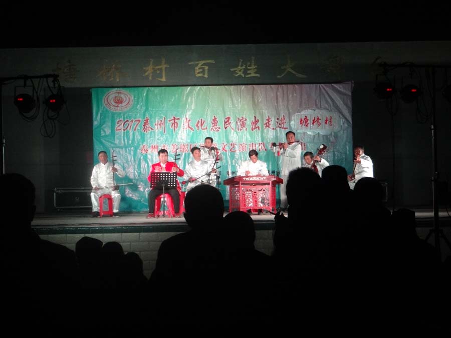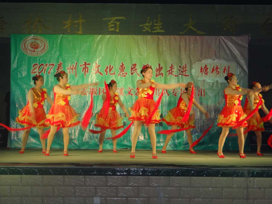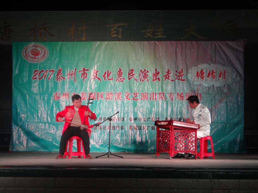 2017年11月28日,淤溪文艺演出队走进塘桥村,为塘桥村村民送去一顿丰盛的文化晚餐,受到一致好评,我们的节目有戏曲、歌曲、表演唱、三句半,小品、器乐曲和杂技绝活等,每个节目都获得观众经久不息的掌声,特别是器乐节目由于演奏精彩,观众看了不过瘾,鼓掌要求不得不再演奏一曲,观众的掌声极大地鼓舞了演员的热情。