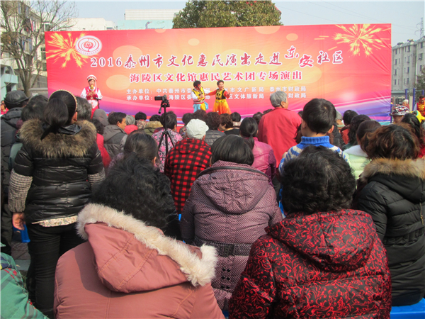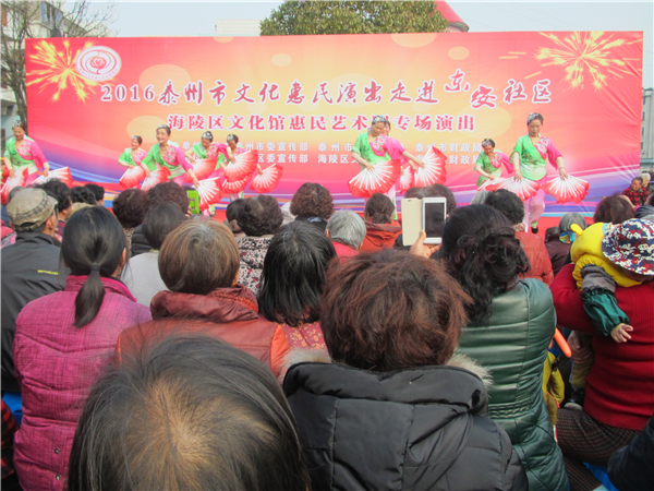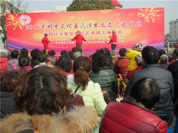 3月3日下午,东安社区邀请海陵区文化馆惠民艺术团来社区开展“庆三八”惠民演出活动,来自海陵区文化馆惠民艺术团的12支演出队伍,为社区的居民们带来了一场精彩纷呈的文化盛宴。