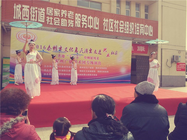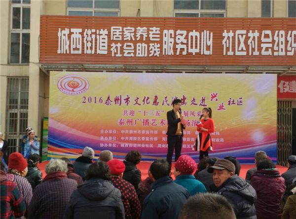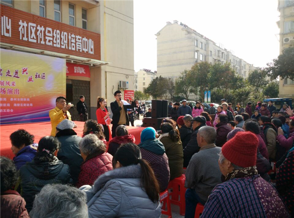 3月10日下午,泰州广播艺术团走进海陵区兴业社区,不少居民早早地赶来观看文化惠民演出。