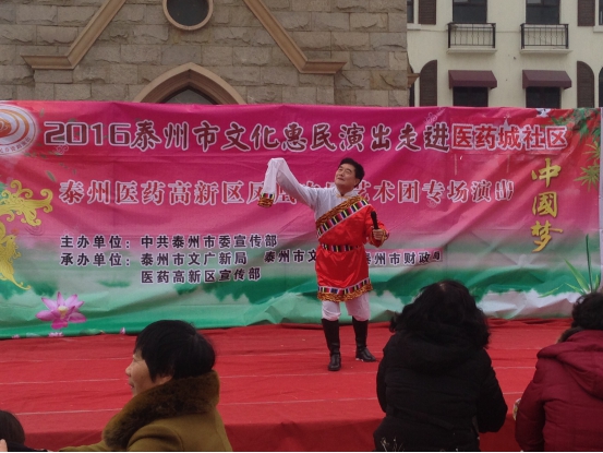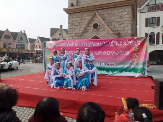 为充分发挥广大群众在文化建设中的主体作用,丰富人们的业余文化生活,积极响应泰州市委、市政府的文化进社区的号召,2016年3月12日下午,寺巷街道医药城社区联合凤凰农民艺术团在东方温莎小镇举办了一场“2016泰州市文化惠民演出走进医药城社区”大型文艺演出。