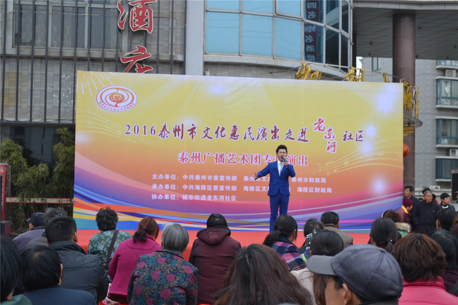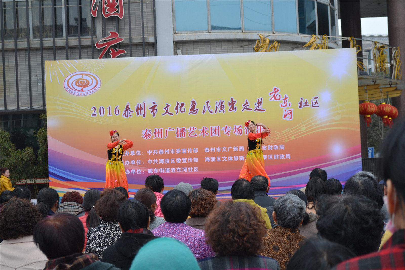 3月22日,泰州文化惠民演出走进老东河社区,泰州广播艺术团为社区居民献上一场精彩绝伦的文艺演出。