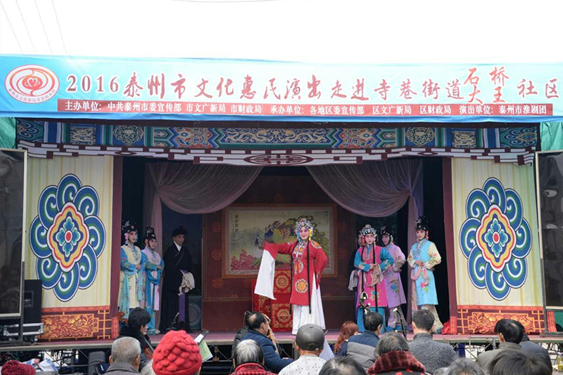 泰州市淮剧团文化惠民演出3月17日下午2点走进医药高新区寺巷街道两个联合点文化惠民演出单的石桥社区和大王社区,为两个社区的居民带来了一台大型优秀淮剧巜唐知县审诰命》精彩的演出得到了观众的一致赞誉,散戏了数百观众意犹未尽久久不愿离去,很多观众直接涌向后台问我们为什么不能留下来多演几场⋯⋯观众的热情对我们来说是最大的收获。