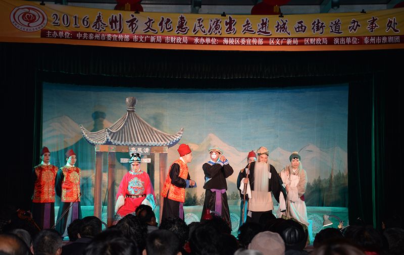 3月16日晚7:00泰州市淮剧团应海陵区城西街道办事处的邀请,惠民演出走进城西街道任景社区演出了大型优秀传统淮剧《腊月雷》,全剧演员精湛的表演,赢得了观众阵阵掌声,社区负责文宣的张红梅女士讲:“正规的大剧团就是不一样,从装台到演出都很认真对待,很讲究”;社区杨金华书记讲:“你们的演出水准很高,不愧是历史悠久的名剧团,我们居民很喜欢欣赏你们的精彩表演,欢迎常来我们社区演出...... ”
