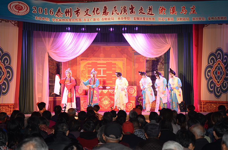 泰州市淮剧团文化惠民演出4月15日、16日两天走进了姜堰区淤溪镇马庄村,为村民带来了两台大型优秀传统剧目《唐知县审诰命》、《荆钗记》,现场气氛热烈、掌声雷动、好评如潮;观众一致称赞政府文化惠民工程的政策好,能够让村民在家门口欣赏这么好的演出,丰富了村民们的文化生活,改善并提高了村民们的生活质量。