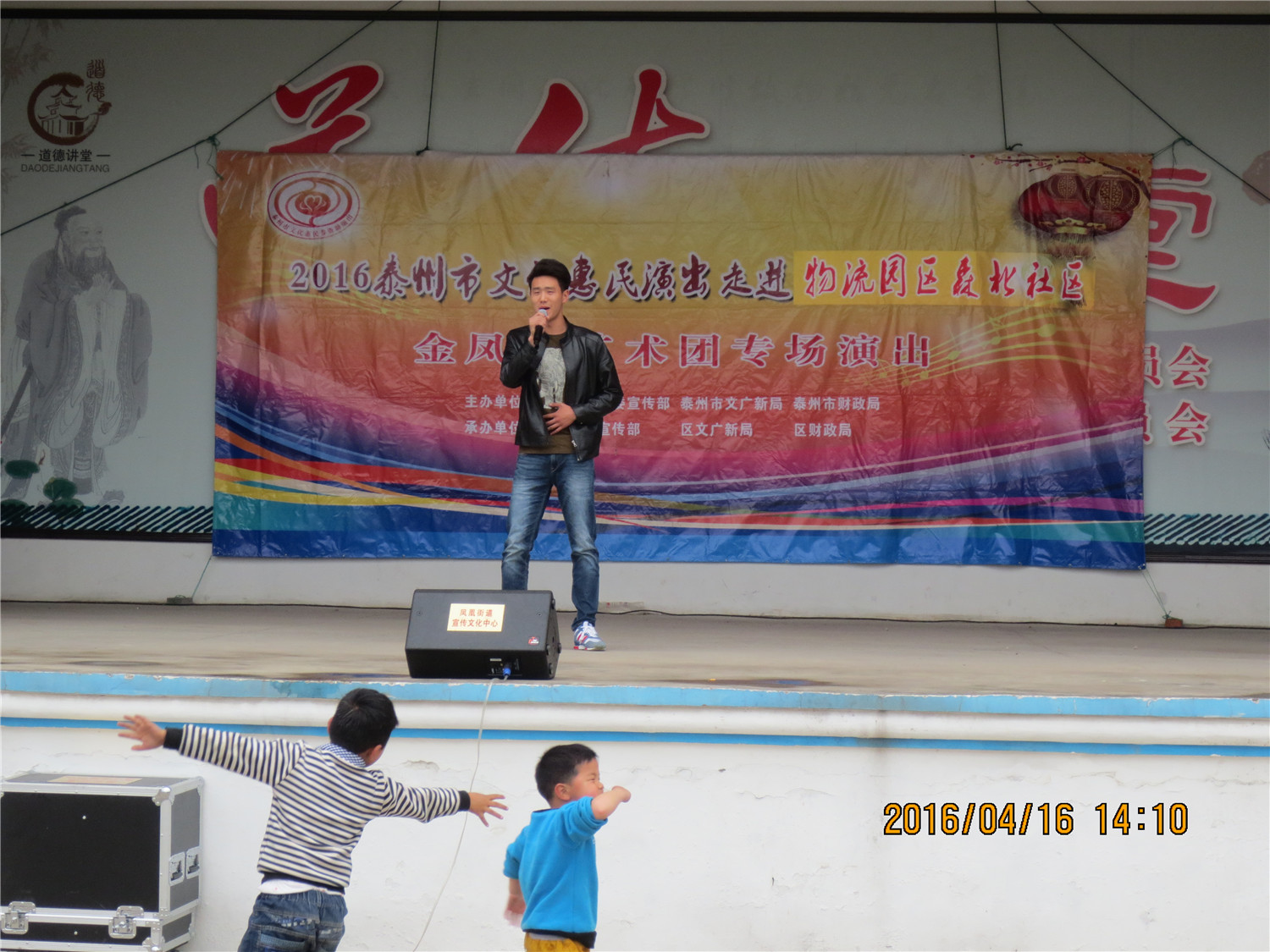 为丰富辖区广大人民群众精神文化生活,把社区精神文明建设活动提高到一个新的水平,4月16日下午,城北物流园区森北社区邀请泰州市高新区金凤凰艺术团的演员们,在百姓大舞台广场开展文化惠民演出活动。