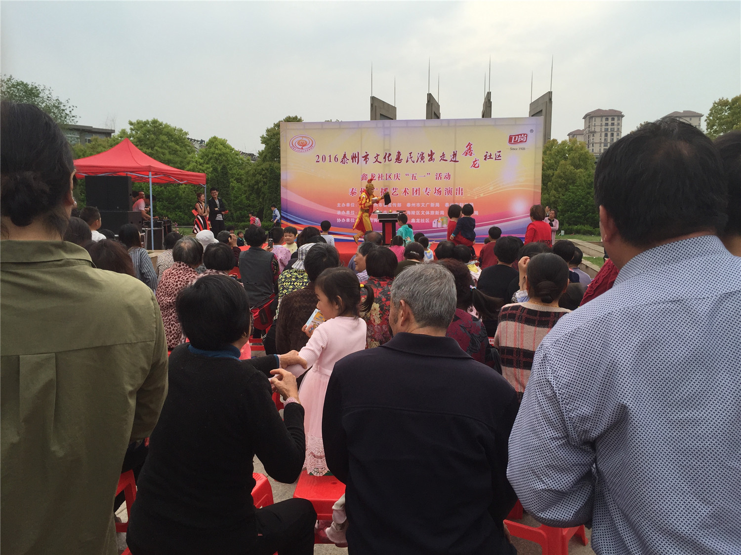 为迎接一年一度的国际五一劳动节,4月22日,鑫龙社区邀请泰州广播艺术团在社区中心广场表演文艺节目。