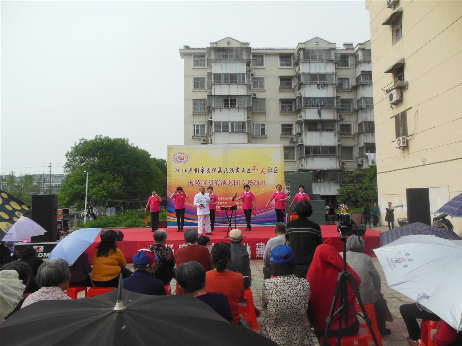 2016年4月22日,泰州文化惠民演出走进工人社区,海陵望海演艺团为社区居民献上一场精彩绝伦的文艺演出。