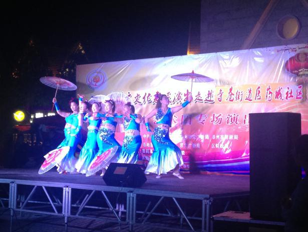 这次演出在医药城社区和金凤凰艺术团的精心策划下,不仅给群众带来了一场精彩演出,更展现了社区浓厚的文化气氛,表达了对祖国国泰民安,繁荣昌盛的祝福,最主要的是鼓舞了全体社区居民共建和谐社区的信心,充分体现了社区朋友们的幸福快乐生活。