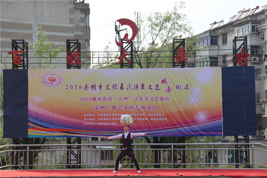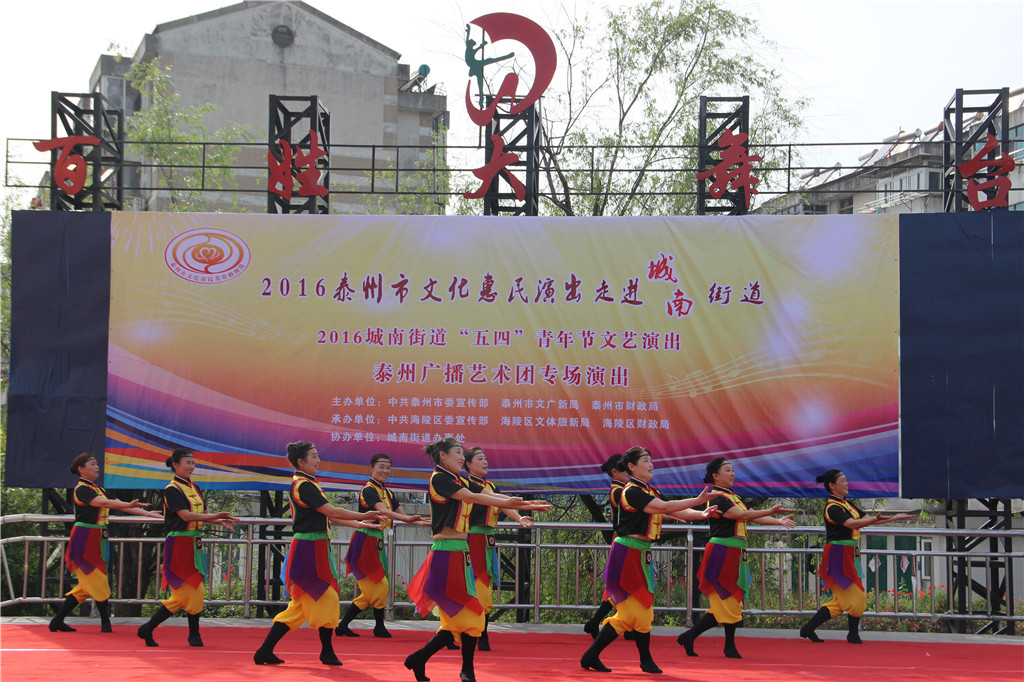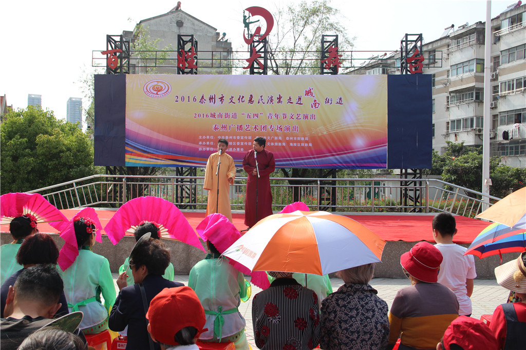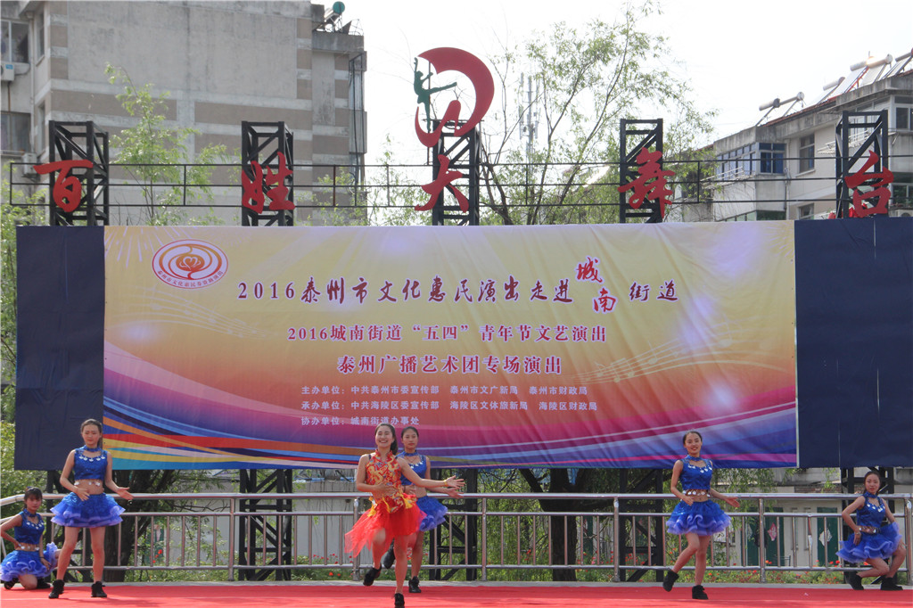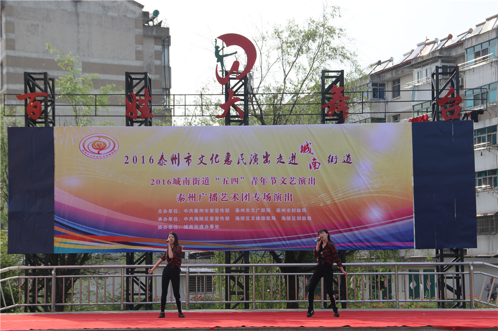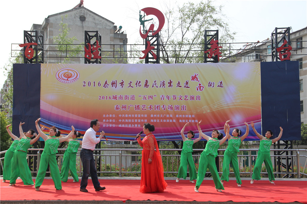 值此“五四”青年节来临之际,为弘扬"五四"精神,展现城南街道广大青年健康向上的精神风貌,增强青年们的凝聚力和向心力,昨天下午,城南街道办事处和泰州广播艺术团在城南街道百姓大舞台联合举办了一场“五四”青年节文艺演出文化惠民演出活动。