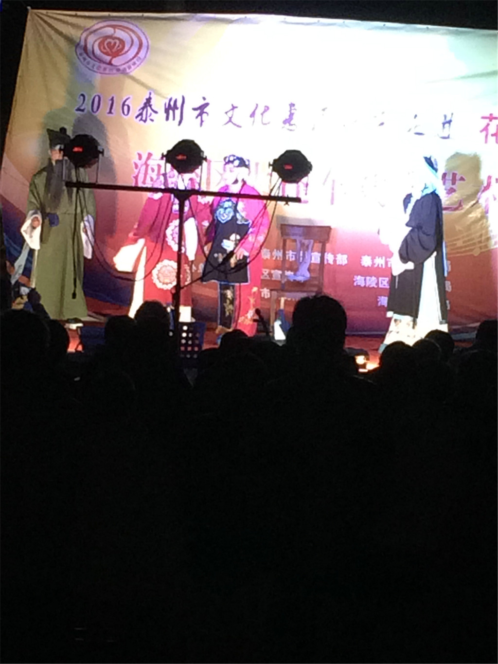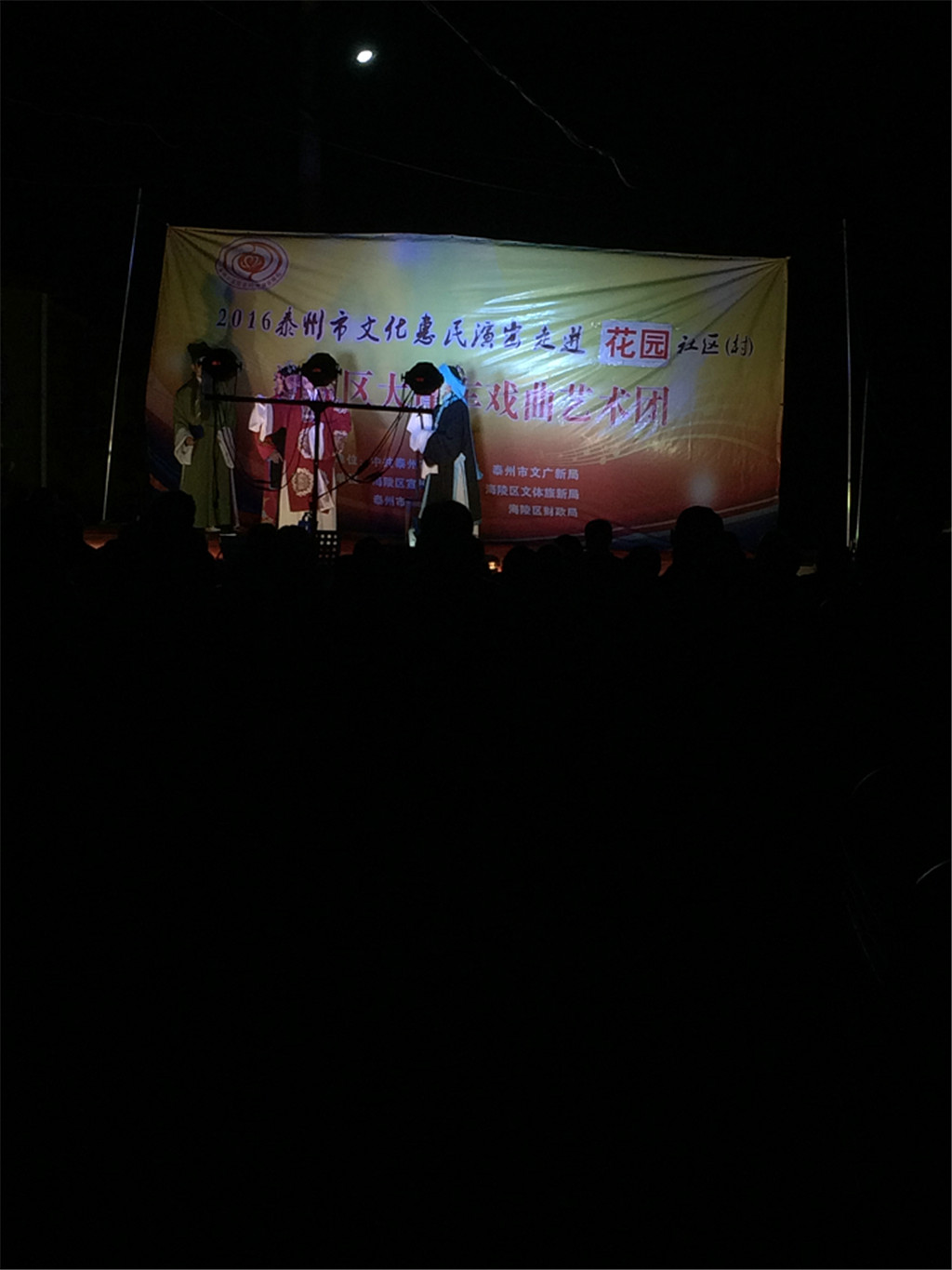 5月6日晚,泰州文化惠民演出走进花园村,海陵区大蓬车戏曲艺术团为村民献上一场戏剧大餐。