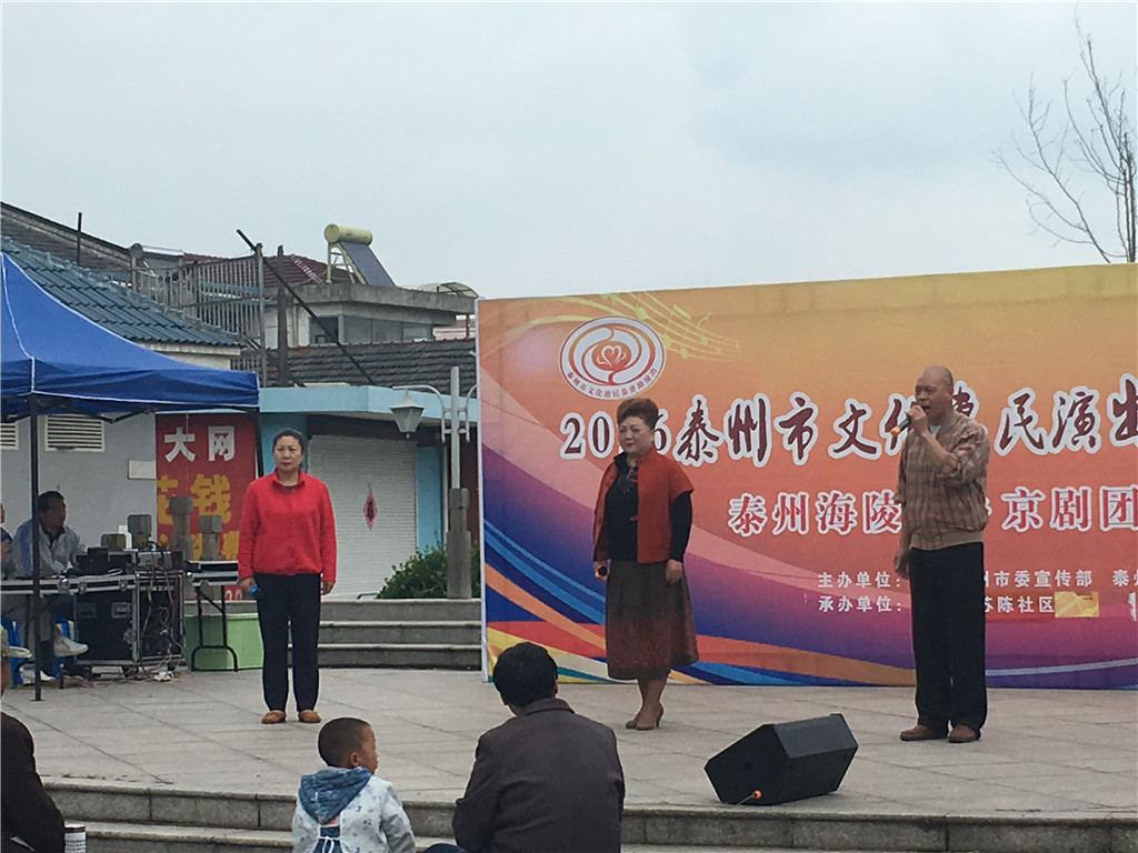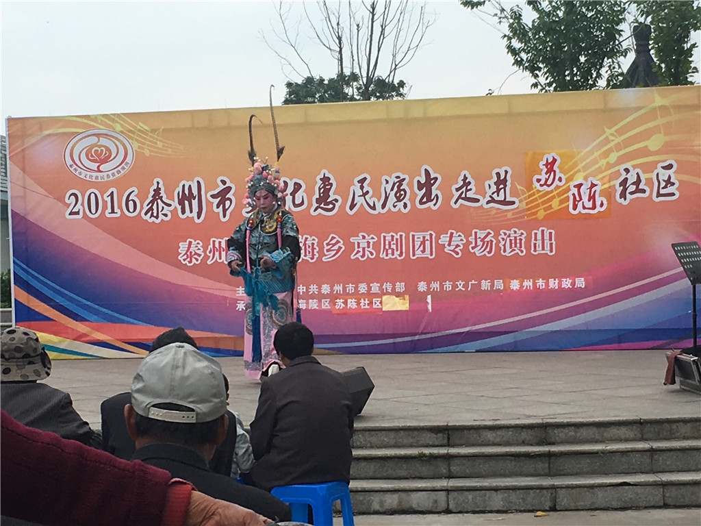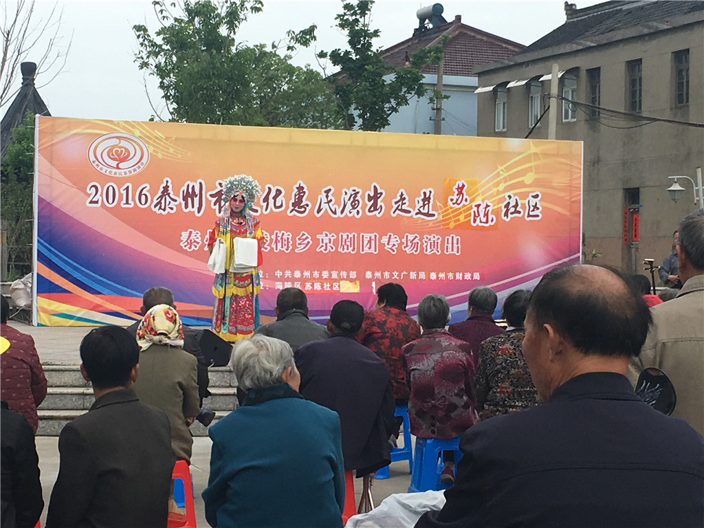 5月10日下午,泰州文化惠民演出走进苏陈镇苏陈社区,海陵区梅乡京剧团在苏陈影剧院广场为村民献上一场戏剧大餐。