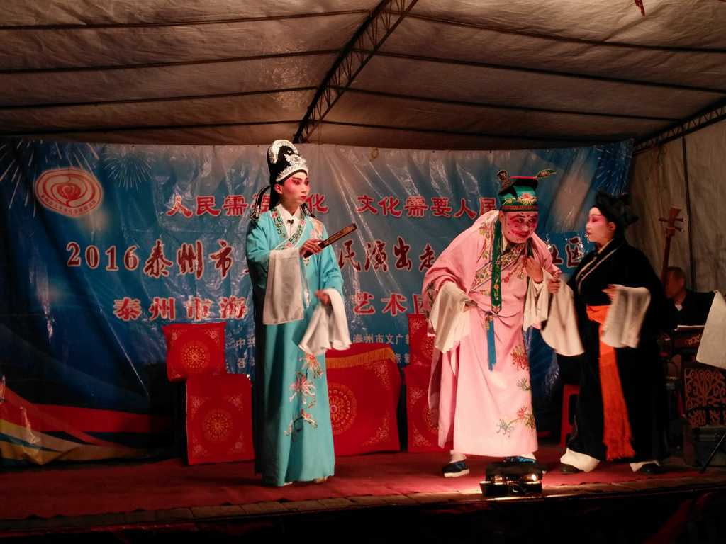 5月9日晚,泰州文化惠民演出走进九龙镇振东社区,海陵区戏曲艺术团为村民献上一场精彩戏剧。