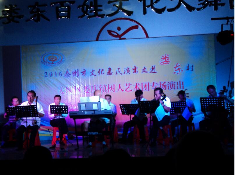 7月1日晚,泰州文化惠民演出团队---娄庄镇树人艺术团在娄庄镇娄东村演出,艺术团20多名文艺骨干先后表演了器乐合奏、快板说唱、舞蹈、歌曲以及戏剧等节目,为广大群众送去了一场文化大餐。