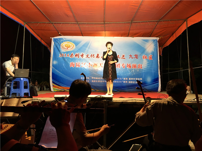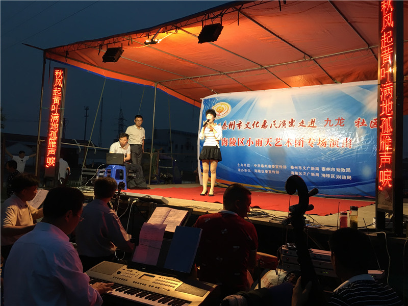 演出在扬剧《西厢记—送别》中拉开帷幕,《郑巧姣—祭母》、《种大麦》、《汗水和着泪水滚》、《双下山》等一系列精彩的表演赢得观众的阵阵掌声。演出历时二个小时,居民动情地说:“我们老年人都非常喜欢这样的演出,以后咱九龙得多搞这样的活动”。“小雨天艺术团来到老百姓当中,为老百姓演出,真是太高兴了!”。