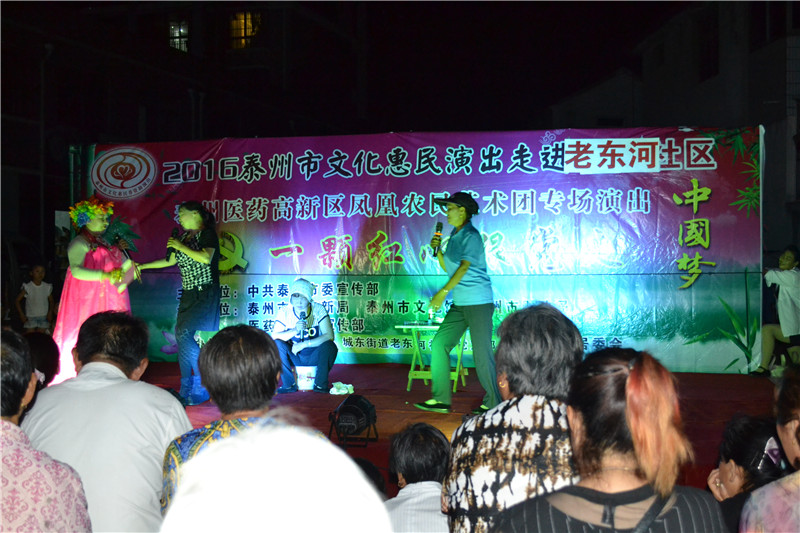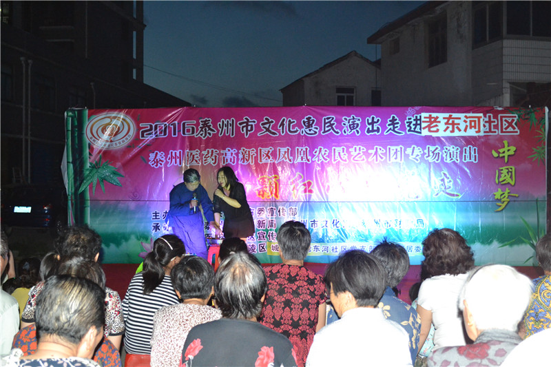 7月8日下午,泰州文化惠民演出走进老东河社区,高新区凤凰农民艺术团为社区居民献上一场精彩绝伦的文艺演出。