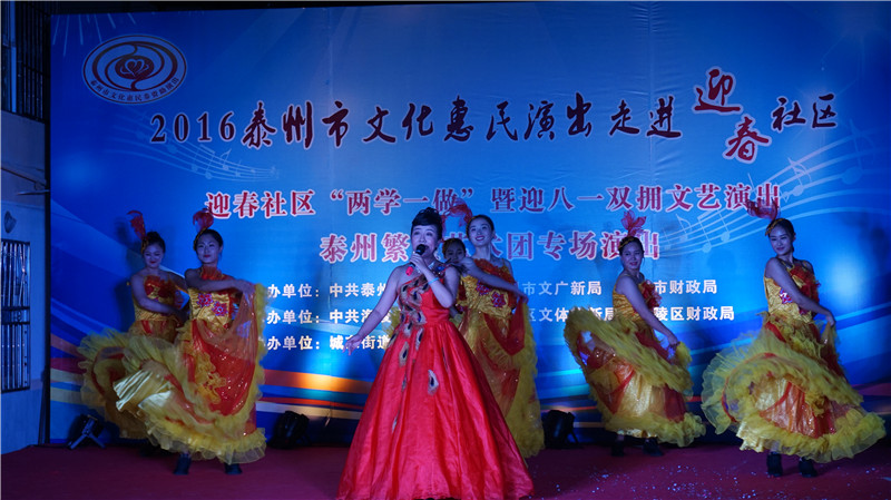 为迎接八一建军节,营造“军爱民、民拥军、军民团结一家亲”的鱼水深情,7月28日晚,迎春社区邀请泰州繁星艺术团,为社区现役军人家庭、本年度预征对象、优抚对象家庭带来精彩的惠民演出,200余人观看演出。