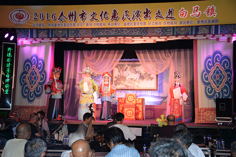 8月20日晚7:30分应高港区白马镇邀请,泰州市淮剧团文化惠民演出走进白马镇白马庙广场,为广大的戏迷朋友带来了一台久演不衰的经典优秀传统淮剧《赵五娘》;尽管高温酷暑、热浪袭人,但是全体演职人员耐着高温、一丝不苟的精湛表演,赢得了现场数千观众阵阵喝彩,专业团队的敬业精神令台下观众热烈高涨、秩序井然;两个多小时的演出结束后,观众们久久不愿离开,直到演职人员上了车,很多观众还在目送大家离去;此情此景令演职人员们很感动,决定今后多创作精品力作,让广大的戏迷朋友欣赏更多的优秀剧目。