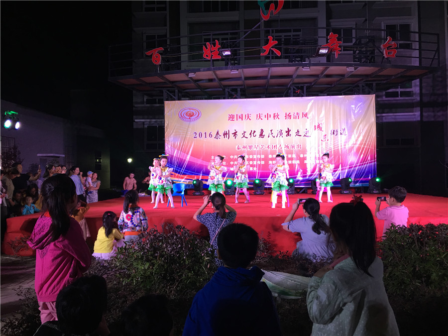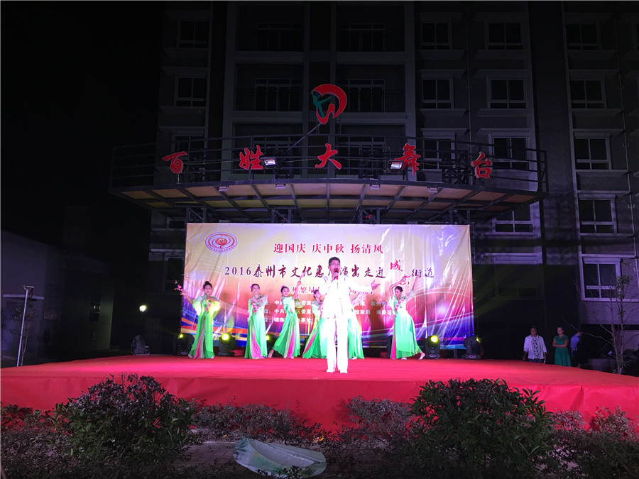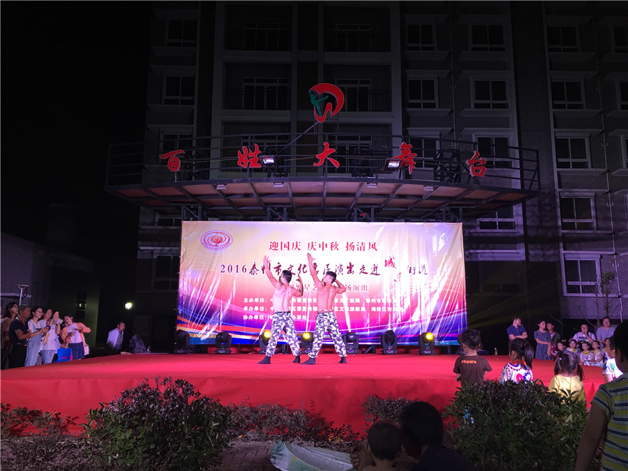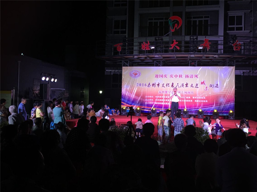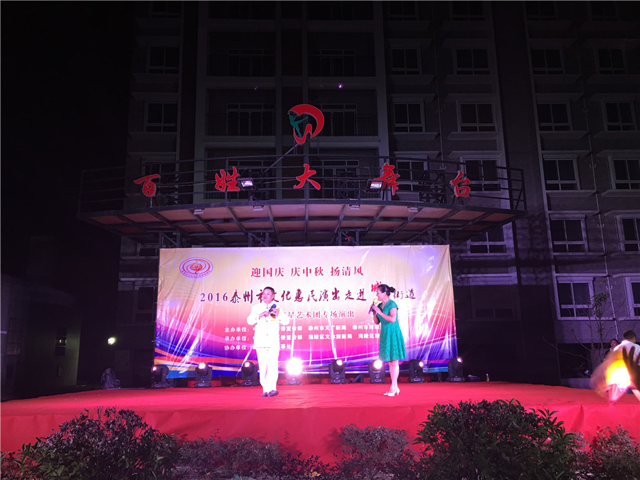 9月14晚,泰州繁星艺术团文化惠民演出走进城东街道,在宫涵社区百姓大舞台开展“迎国庆 庆中秋 扬清风”专场演出活动。