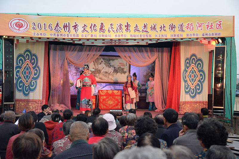 10月14日泰州市淮剧团应海陵区城北街道稻河社区的邀请,文化惠民演出给广大的社区居民带来了一台具有孝老敬老教育意义深刻的优秀传统淮剧《腊月雷》;此剧是根据已故京剧大师周信芳《清风亭》改编整理,讲述明朝,某地,有一对以卖豆腐为生的老人张元秀夫妇,未生子女,在元宵节夜晚,途经清风亭,拾到一个被弃男婴,起名叫张继保⋯⋯
