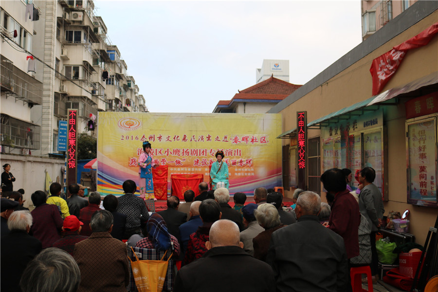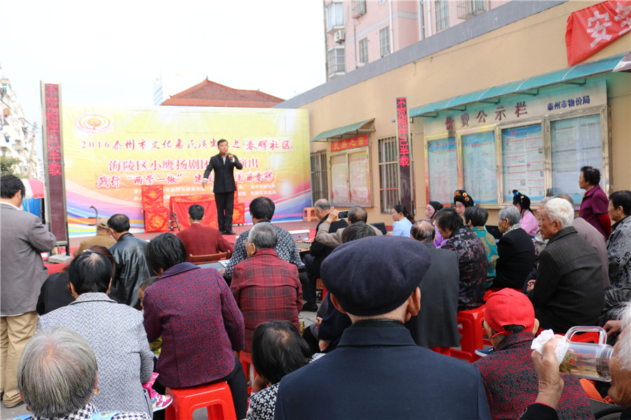 为进一步加强社区文化建设,不断满足社区居民的精神文化需求,营造文明、和谐的社区氛围,10月25日下午,春晖社区邀请泰州小鹰扬剧艺术团专场汇演,为社区居民们献上了一份丰富多彩的文化演出。