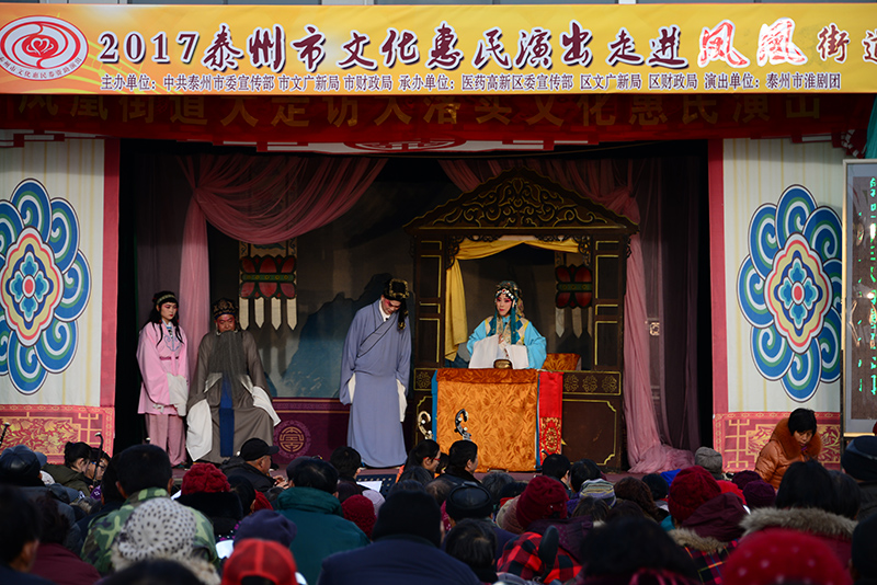 泰州市淮剧团2月4日、5日应医药高新区凤凰街道办事处的邀请,文化惠民演出走进凤凰邻里中心广场,为凤凰街道的广大居民带来了两台大型优秀传统淮剧《荆钗记》和《谷素珍出家》。精彩动人的剧情深深感染了在场所有观众时而开怀大笑、时而潸然落泪,舞台演员扎实的基本功赢得了几千现场观众的阵阵掌声,每天演出结束都有大批观众意犹未尽的涌向后台,观众李宏扣先生说:“专业的大剧团无论是唱功还是表演就是很规范、看得很过瘾,欢迎泰州淮剧团常送戏来我们凤凰街道⋯⋯”金杯银杯不如老百姓的口碑,我们将继续创作更多更优的剧目为百姓服务。