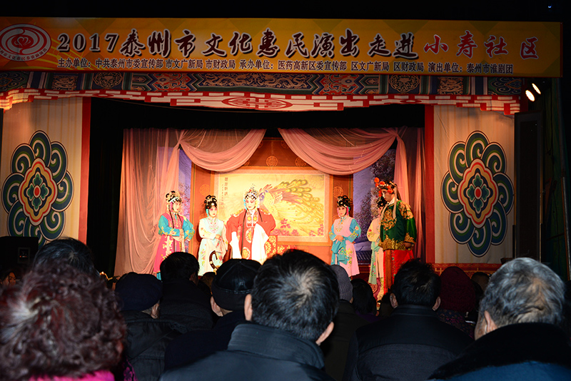 2月16日泰州市淮剧团文化惠民演出应医药高新区寺巷街道小寿社区的邀请,走进了龙凤家园,为广大的居民带来了一台大型优秀传统淮剧《唐知县审诰命》,此剧充满了正能量,两个半小时的演出让广大的观众深刻地体会到中国戏曲的魅力,演员专业的表演扎实的基本功把观众带入到了情不自禁数次喝彩的地步;由此引发出一台好戏不但剧情好,而且演员要配备好,今后我们将继续保持配备强大的演员阵容为广大的观众服务。