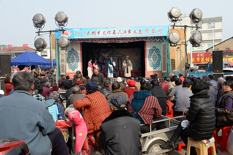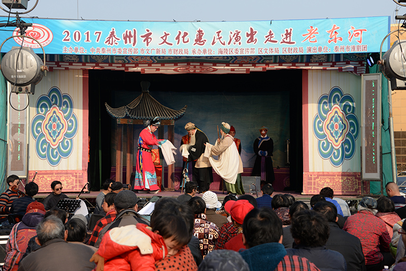 泰州市淮剧团3月10日应海陵区城东街道办事处老东河社区的邀请,文化惠民演出活动走进了宏基花园小区广场,为广大的居民观众带来了一台大型优秀传统淮剧《腊月雷》;此剧是我团作为文化惠民演出首推保留经典剧目,要向广大的市民宣传孝老敬老是我们每位公民应尽的义务、倡导孝道从古至今都是大力提倡的。两个半小时的演出精彩的剧情和较高的专业表演艺术水准赢得现场观众阵阵掌声,证明基层观众是欢迎我们团队的是对我们带来的剧目认可的,同时也证明我们的剧目是接地气的,今后我们将继续保持和掌握创作方向,扎扎实实地为基层百姓服务。