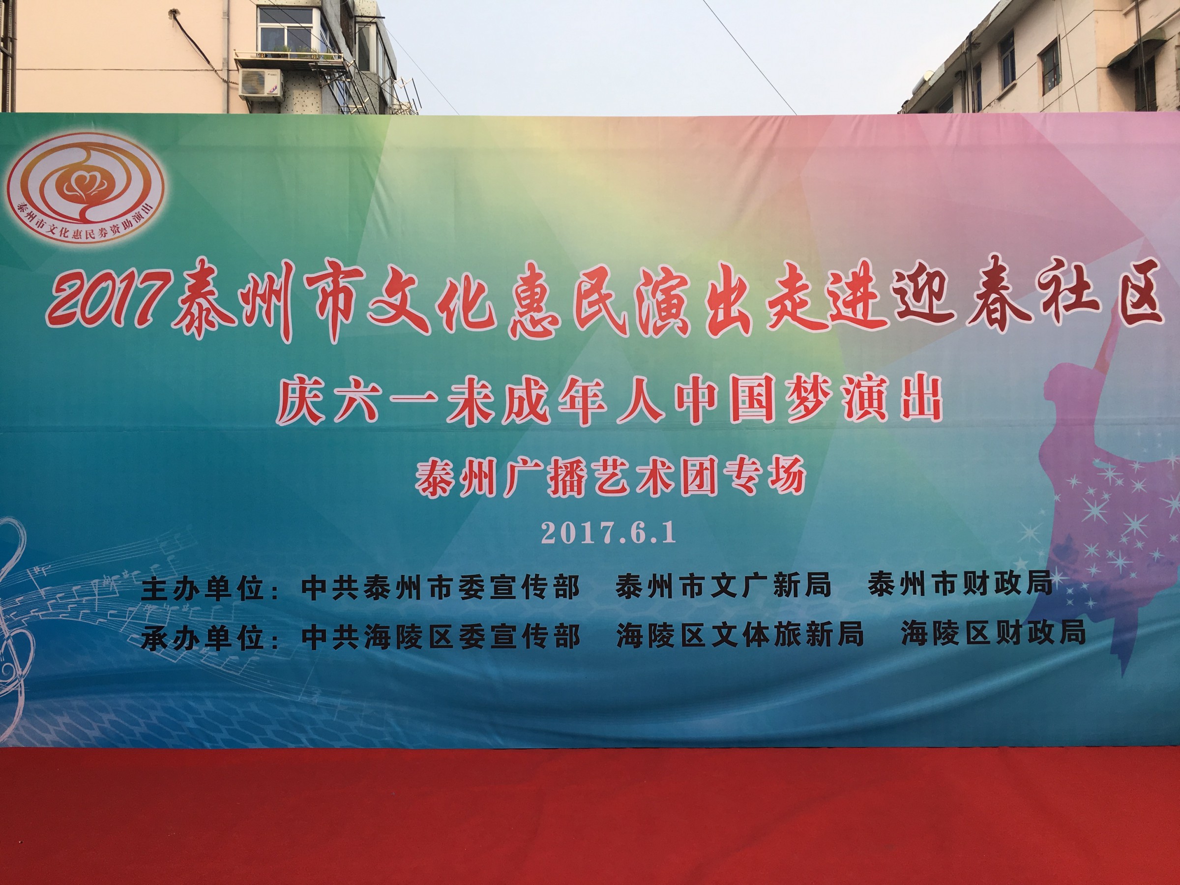 6月1号下午,2017泰州广播艺术团走进迎春社区,开展“庆六一未成年人中国梦”文化惠民演出。