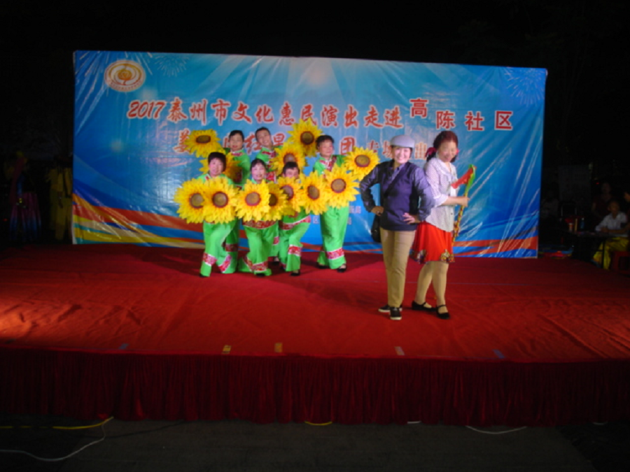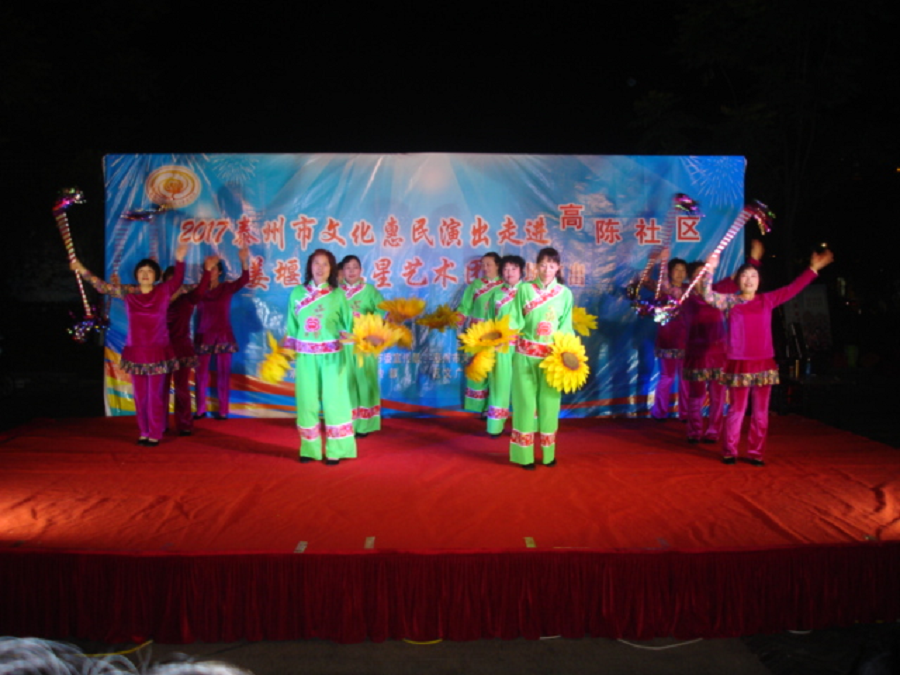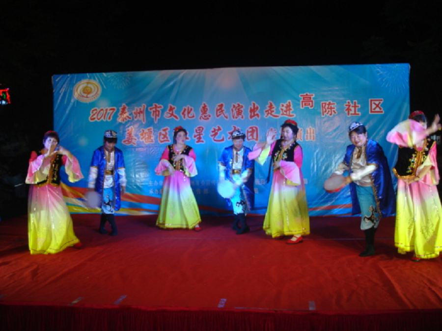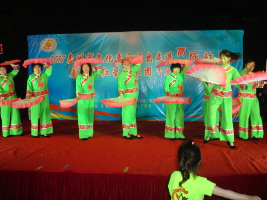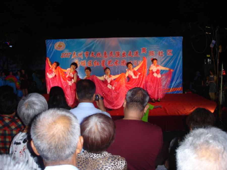 红星艺术团应高陈社区的邀请走进高陈社区演出,演员们的精彩表演,观众们给予热烈的掌声,好多观众拍下了精彩的镜头,传来一阵阵叫好,真是台上歌舞台下欢!