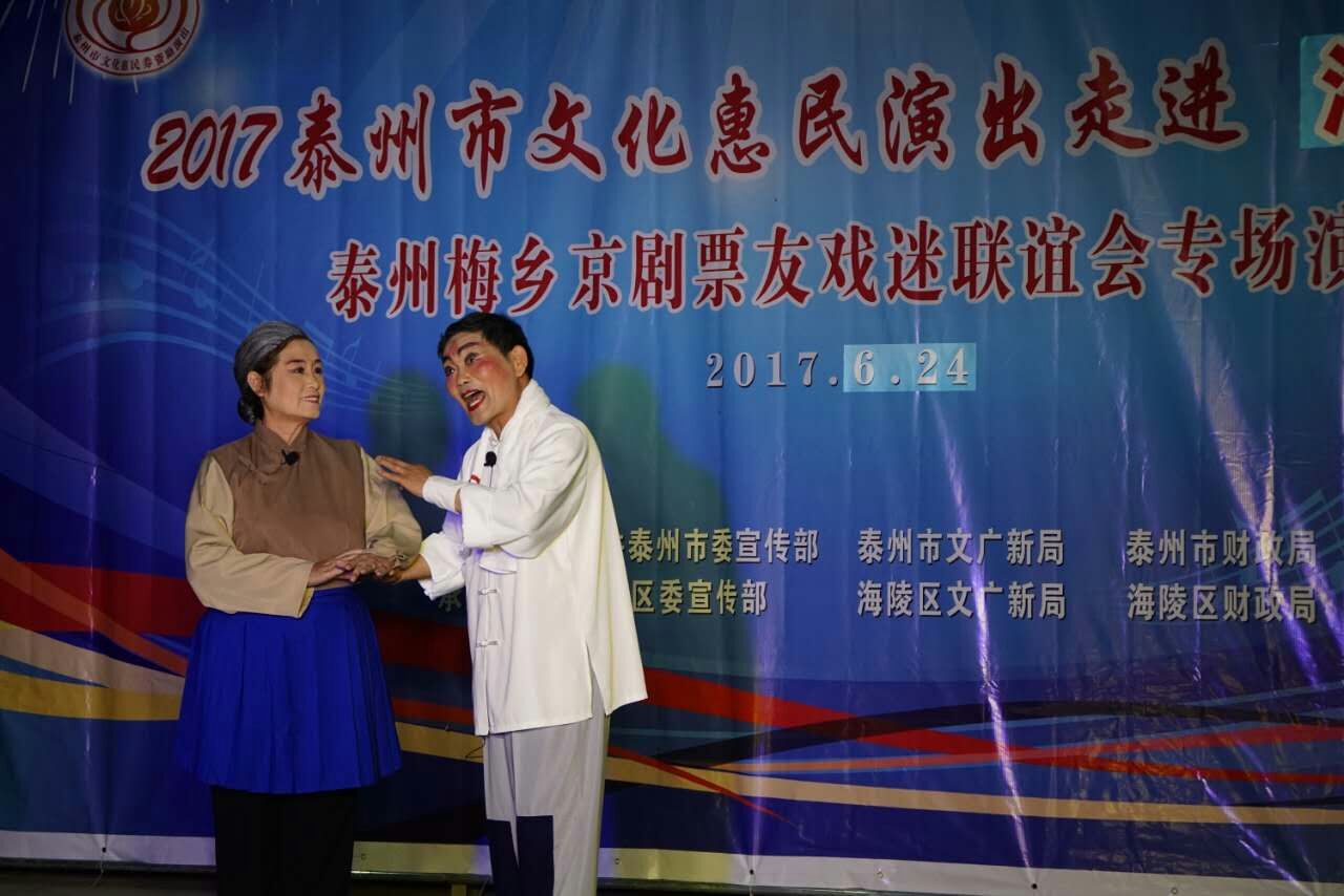 6月24日晚,梅乡京剧票友联谊会赴城西街道海光社区开展惠民演出活动,为居民们送上了一台高质量的京剧艺术大餐,让居民们过足了戏瘾。此次演出,主要以居民们比较熟悉的现代京剧为主,先后为居民观众们表演了《沙家浜》、《江姐》、《智取威虎山》、《白毛女》、《红灯记》、《海港》等剧目中的折子戏和经典唱段,其中穿插了传统京剧《锁麟囊》、《白蛇传》的两段经典折子戏。演员们通过彩唱、对唱、折子戏表演等形式轮番上场,把自己最出彩的舞台形象奉献给观众朋友。演出过程中,不时听到台下的居民观众不由自主地跟着演员有滋有味、有板有眼地唱起来,同时对每一个精彩节目都报以热烈的掌声和喝彩声。