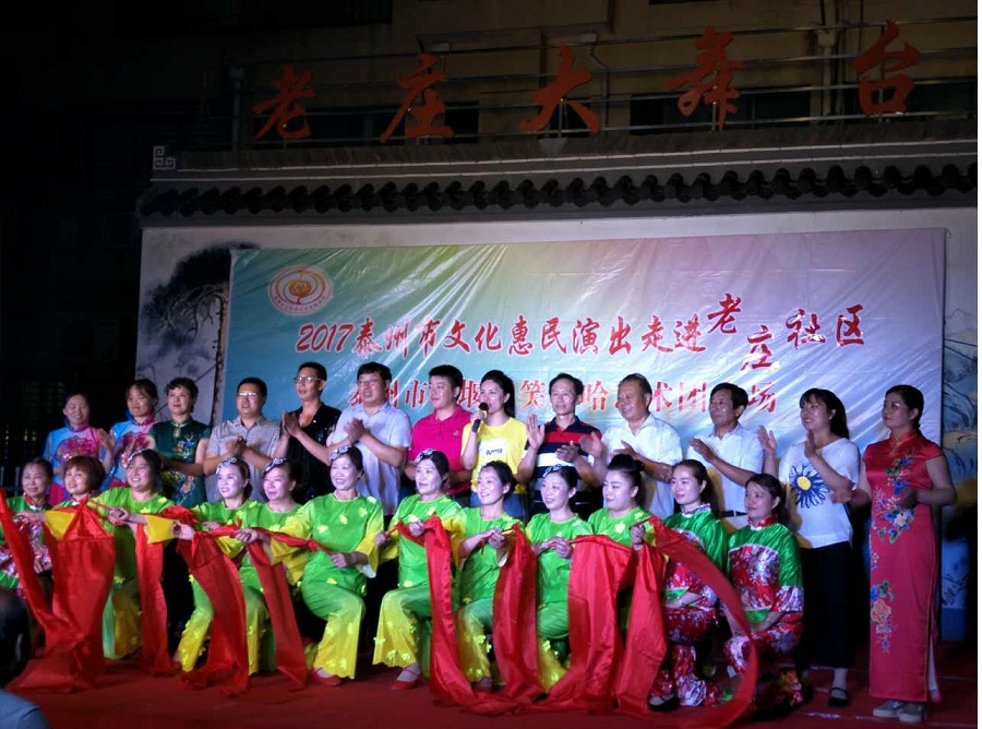 6月25日,姜堰区笑哈哈艺术团文化惠民专场演出走进罗塘街道老庄社区。晚上7点演出在老庄社区大舞台准时开始,现场表演的节目有舞蹈《红红火火大中华》、莲花落说唱《莲花一打笑哈哈》、方言韵白《洗澡》、萨克斯演奏《北国之春》、喜剧小品《老娘舅》、天津快板《有话好好说》、相声《趣说泰州话》、越剧梁山伯与祝英台选段《十八相送》、表演唱《财政惠民乐农家》、以及独唱等11种形式、12个节目。整台演出时长115分钟,观众约500人左右。节目形式多样、内容丰富,尤其相声、快板、喜剧小品、方言韵白等语言类特色节目赢得了观众的阵阵笑声和掌声,受到了社区干部、群众的一致好评。