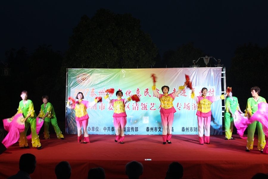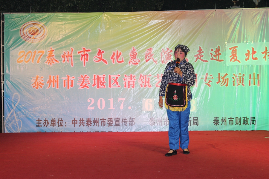 6月23日,姜堰区清瓴艺术团惠民演出走进沈高镇夏北村。夏北村是沈高镇政府所在地,居民居住集中,人口密集,群众文化娱乐生活丰富。惠民演出在镇宣传文化中心广场举行,观众观看演出热情高涨。整场演出在欢快热烈的舞蹈《鼓动天地》拉开了序幕,台上台下掀起了欢乐的高潮。小戏剧《十八相送》赢得了观众热烈的掌声,小品《上代做给下代看》让中老年观众受到深刻的启发教育,演出在舞蹈《张灯结彩》中结束。整场演出两个多小时,观众流连忘返,纷纷称赞在家门口享受了一场文化盛宴。