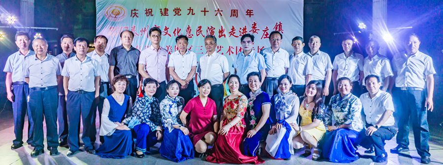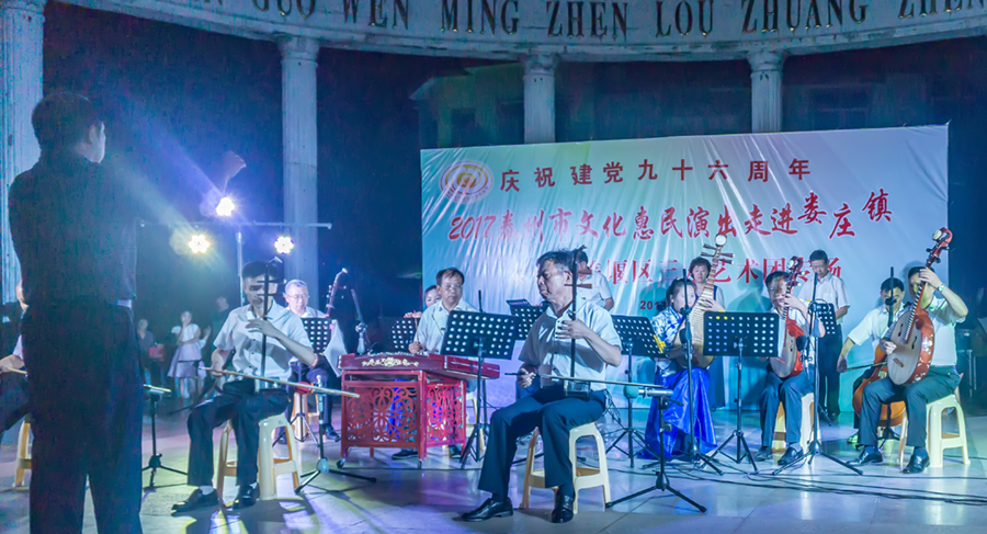 在中国共产党成立96周年之际,姜堰区三水艺术团应娄庄镇点单邀请,于2017年6月27日晚7时在娄庄镇文化广场举行惠民演出。 傍晚时分,华灯初放。乡亲们早早来到演出现场,广场上黑压压一片,坐满了观众。为了这场演出,艺术团做了精心准备,挑选出本团精品节目奉献给娄庄的观众。整台节目15个,形式多样內容丰富。有民乐合奏、独奏、戏曲、小品、舞蹈等。特别是小品《夫唱妇随》很贴近老年人的生活,观众掌声不断。演出时长100分钟,观众人数达三百多人。