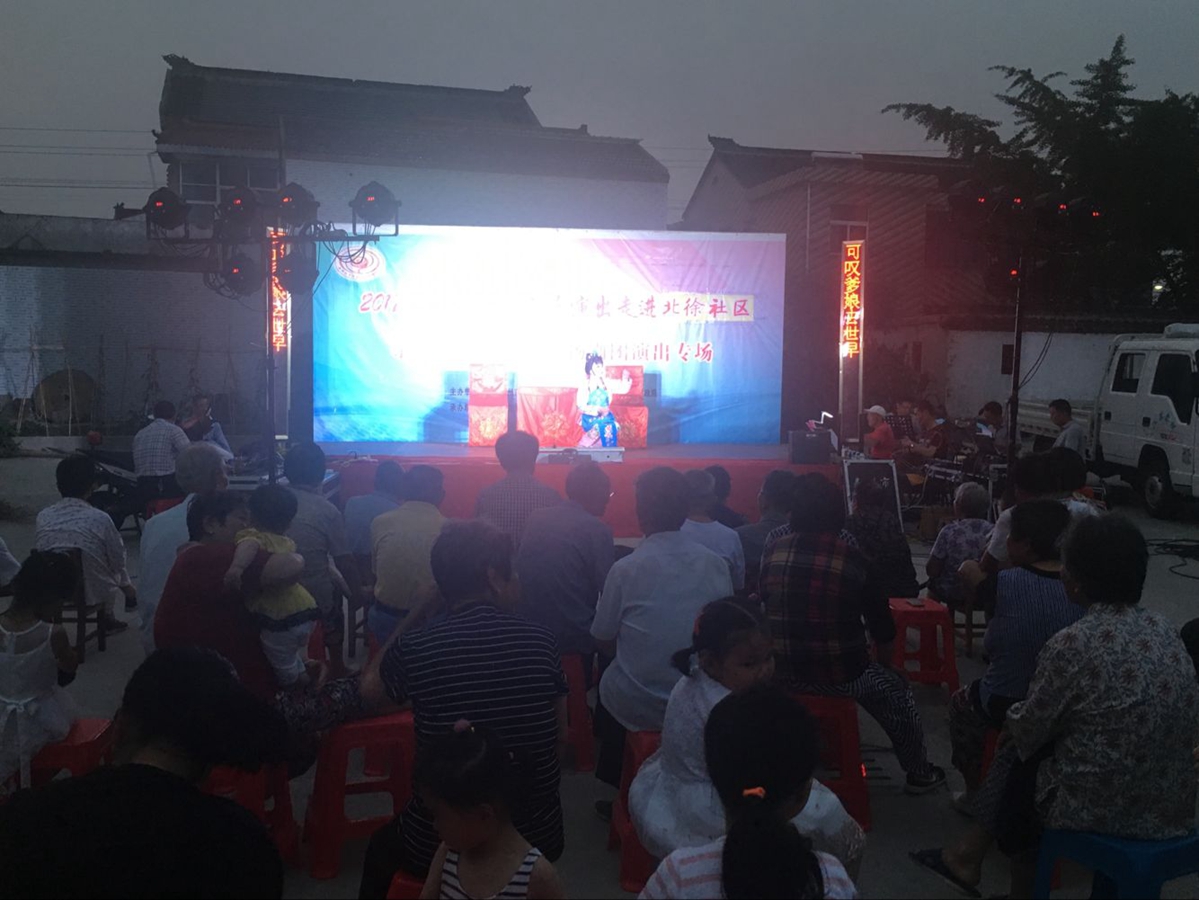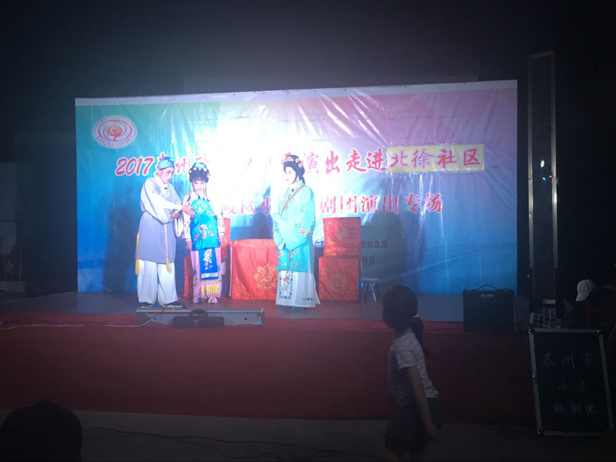 成功举办。很多喜爱扬剧的戏迷天还没有黑就早早的坐在那里等候演出开场。本场演出演出了扬剧的几本经典折子戏。观众评价不错,同时有些懂戏的戏迷也为我们提了几点合理化建议,非常感谢北徐的戏迷对我们团队的关系和支持。我们会接受各方戏迷的建议,不断完善演出中的不足!