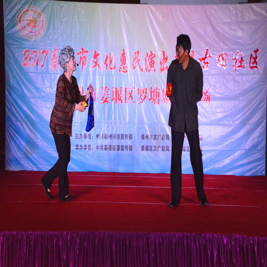 7月3日,姜堰区罗塘剧社应罗塘街道古田社区邀请,2017年泰州市文化惠民券专场演出于当晚7点,在古田社区古田新村小公园上演。为适应观众不同层次的文化欣赏需求,姜堰区罗塘剧社精心策划了16个丰富多彩的文艺节目,随着欢快喜庆的音乐响起,舞蹈《张灯结彩》拉开了演出序幕,当晚演出不仅有激情奔放的民歌与民舞,而且有耳熟能详的戏曲与小品,压台小戏淮剧《父还子债》,该剧是根据笫五届感动泰州•美德善行十大人物,姜堰区张甸镇农民李开诚为死去的儿子偿还欠债的真实故事创作而编导,剧情生动感人,演员入情入戏,唱腔催人泪下,整台演出效果,弘扬社会正气,倡导诚实守信,气氛热烈,掌声不断,赢得了广大观众的一致好评。当天晚上演出时长120分钟,观众达到200多人,优美而精彩的表演,给古田居民送去一份丰盛的文化大餐。