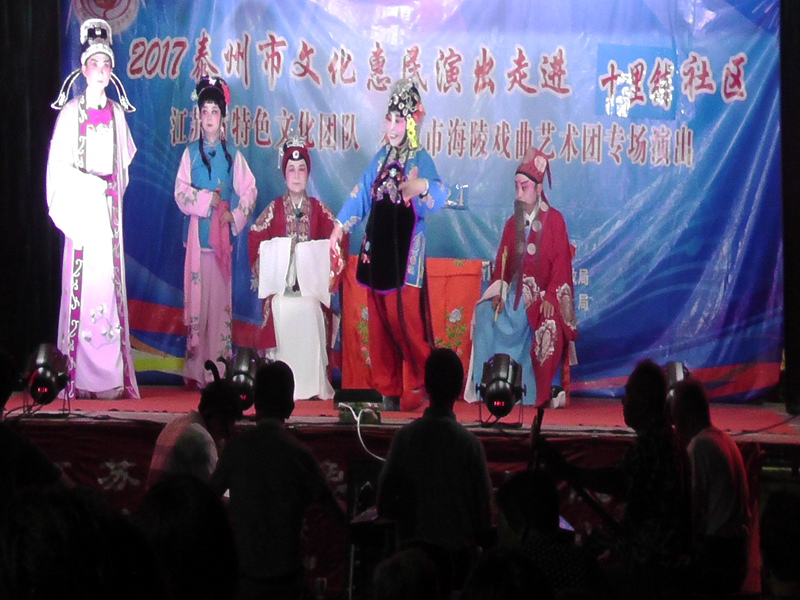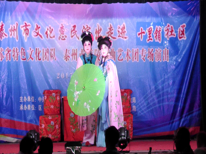 泰州市海陵戏曲艺术团于2017年6月24日晚7时30分在京泰路街道十里铺社区广场演出大型优秀传统扬剧——《真假新郎》。我团参演人员25人。由于十里铺社区积极宣传,前来看戏的群众300余人,人民需要文化,文化需要人民,演出现场气氛热烈,观众掌声不断,演出圆满成功。这更加激起我们为老百姓排好戏、演好戏、唱好戏。把泰州市文化惠民演出活动锦上添花,更上一层楼。
