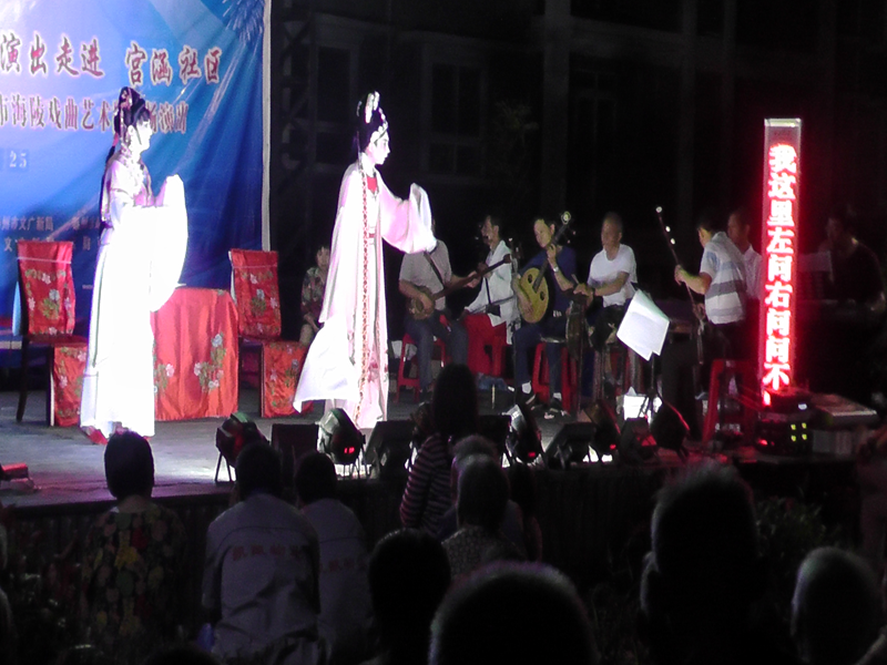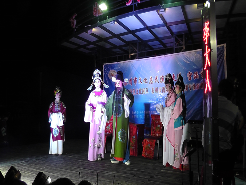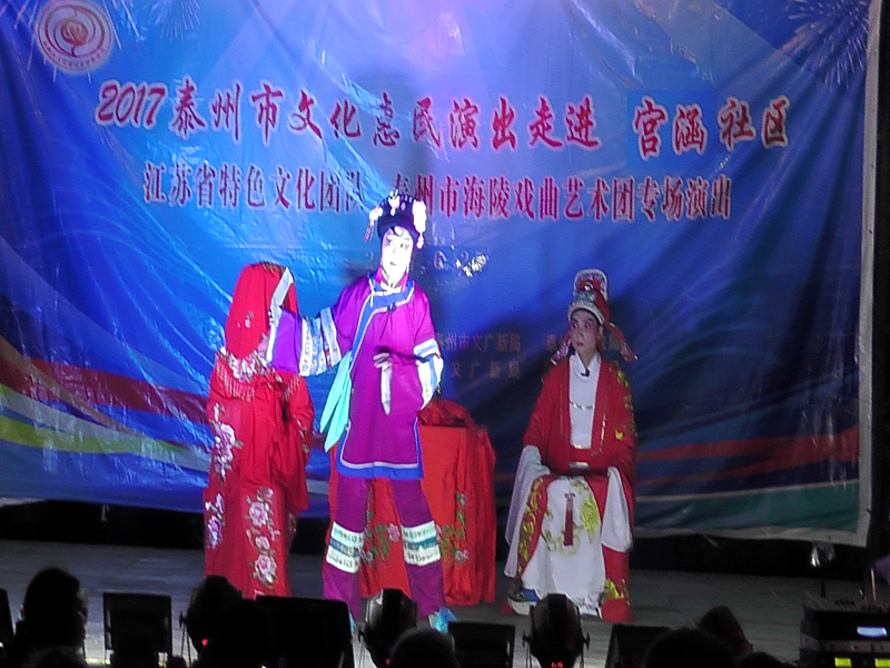 泰州市海陵戏曲艺术团于2017年6月25日晚7时30分在城东街道宫涵社区广场演出大型优秀传统扬剧——《碧玉簪》。我团参演人员25人。由于宫涵社区积极宣传,前来看戏的群众300余人,人民需要文化,文化需要人民,演出现场气氛热烈,观众掌声不断,演出圆满成功。这更加激起我们为老百姓排好戏、演好戏、唱好戏。把泰州市文化惠民演出活动锦上添花,更上一层楼。