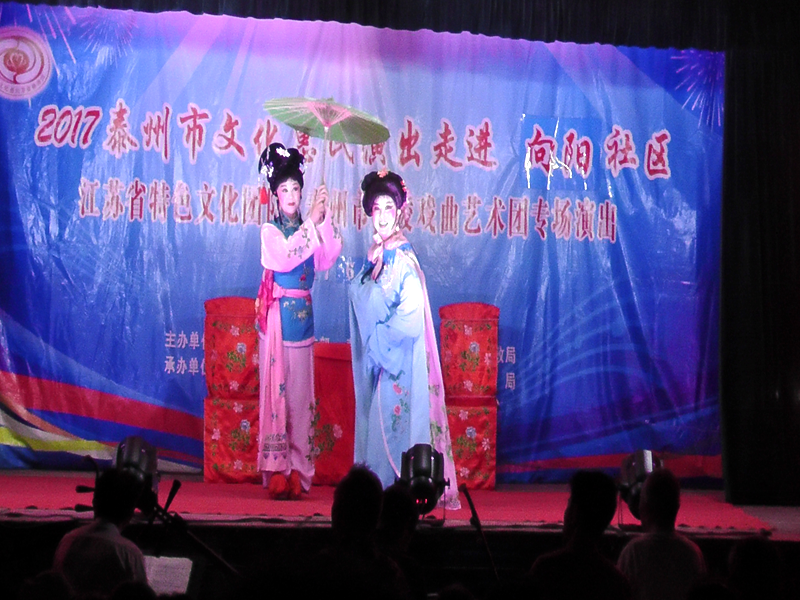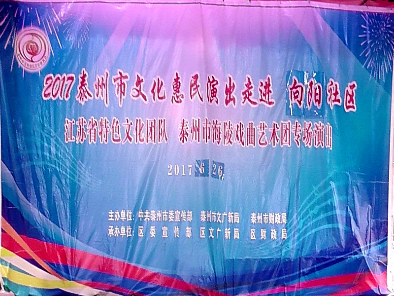 泰州市海陵戏曲艺术团于2017年6月26日晚7时30分在凤凰街道向阳社区广场演出大型优秀传统扬剧——《真假新郎》。由于向阳社区积极宣传,前来看戏的群众400余人,人民需要文化,文化需要人民,演出现场气氛热烈,观众掌声不断,演出圆满成功。这更加激起我们为老百姓排好戏、演好戏、唱好戏。把泰州市文化惠民演出活动锦上添花,更上一层楼。