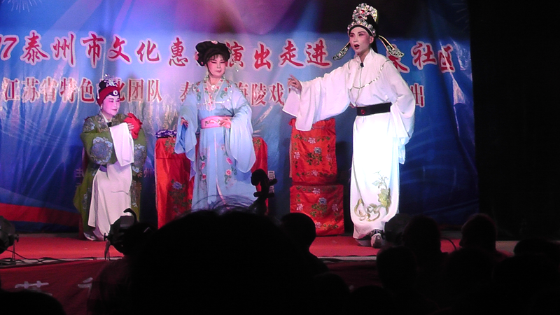 泰州市海陵戏曲艺术团于2017年6月29日晚7时30分在城东街道迎春社区广场演出大型优秀传统扬剧——《逃婚的新娘》。我团参演人员25人。由于迎春社区积极宣传,前来看戏的群众100余人,人民需要文化,文化需要人民,演出现场气氛热烈,观众掌声不断,演出圆满成功。这更加激起我们为老百姓排好戏、演好戏、唱好戏。把泰州市文化惠民演出活动锦上添花,更上一层楼。