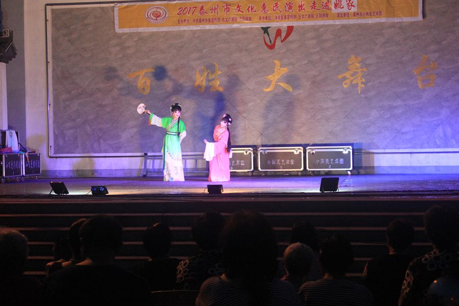 2017年7月3日晚,应海陵区九龙镇姚家社区邀请,小雨天艺术团走进姚家社区百姓大舞台,为基层社区居民演出了一场经典传统扬剧全本戏《恩仇记》。为了保证社区群众的欣赏效果,艺术团采用高级设备,下午3点,社区主要领导和小雨天艺术团就来到演出现场,为晚上的演出做好了充分准备。节目晚上正点准时开演,现场300多的社区观众看的是兴致勃勃,高潮之时的广场更是掌声雷动,很多观众都说,看到这样的正规化演出,才是感觉到了真正的文化惠民。因现场社区观众的盛情,正本演出前还添续了折子戏段加唱,整场演出持续了近3小时之多...