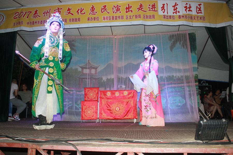 2017年7月4日晚,应海陵区城西街道引东社区邀请,小雨天艺术团走进引东社区事先安排的场地,为基层社区居民演出了一场经典传统扬剧全本戏《宝莲灯》。为了保证社区群众的欣赏效果,按社区领导安排,艺术团动用了戏曲演出专用大舞台,下午5点,社区主要领导和小雨天艺术团就来到演出现场,为晚上的演出做好了充分准备。节目晚上正点准时开演,现场500多的社区观众看的是兴致勃勃,高潮之时的广场更是掌声雷动,很多观众都说,看到这样的正规化演出,才是感觉到了真正的文化惠民。因现场社区观众的盛情,正本演出后还添续了折子戏段加唱,整场演出持续了近3小时之多...