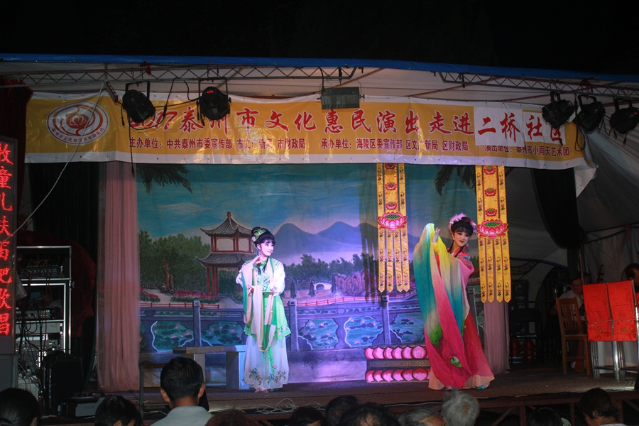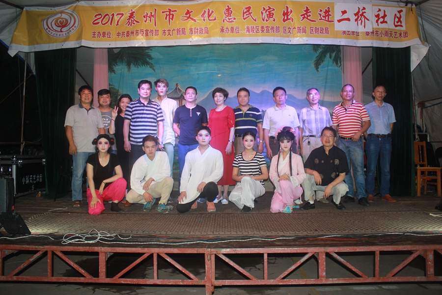 2017年7月5日晚,小雨天艺术团走进医药高新区寺巷街道二桥社区,为基层社区居民演出了一场经典传统扬剧全本戏《宝莲灯》。为了保证社区群众的欣赏效果,按社区领导安排,艺术团动用了戏曲演出专用舞台,下午5点,社区主要领导和小雨天艺术团就来到演出现场,为晚上的演出做好了充分准备。节目晚上正点准时开演,现场400多的社区观众看的是兴致勃勃,高潮之时的广场更是掌声雷动,很多观众都说,看到这样的正规化演出,才是感觉到了真正的文化惠民。因现场社区观众的盛情,正本演出后还添续了折子戏段加唱,整场演出持续了近3小时之多...