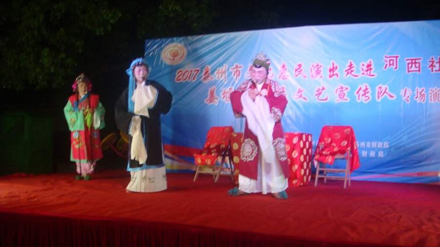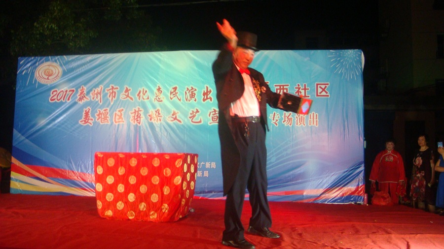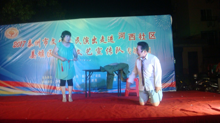 姜堰区蒋垛文艺宣传队于7月11日晚上七点在罗塘街道河西社区奉献了一场精彩演出,演出有表演唱、魔术、舞蹈、小品、戏曲等形式,现场气氛热烈,观众掌声不断,赢得了一致好评。