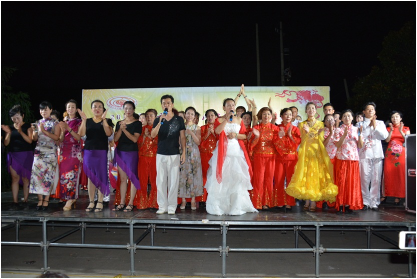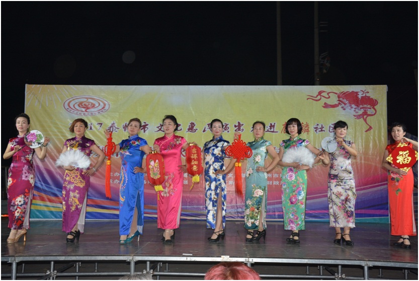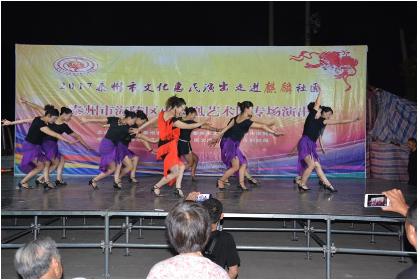 初伏的夏晚,知了声声入耳,火凤凰艺术团在台上的节目更是劲歌热舞,陆续赶来看演出的台下观众人头攒动、过路的车子也排起了长龙.有的观众竞忘了扇子功能,只见他们在兴高采烈地喝彩,掌声、喝彩声、歌声一片沸腾!歌舞让乡村的空气如同陈酿开瓶,醇香扑鼻,沁入肺腑……那些带着扇、扛着凳的、牵老带幼观众越来越多…高潮时,社区领导也登台一曲高歌秀美、更是响彻着麒麟的夜空!