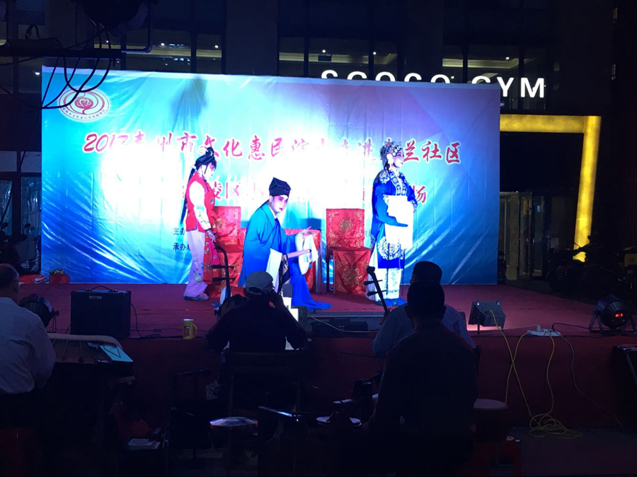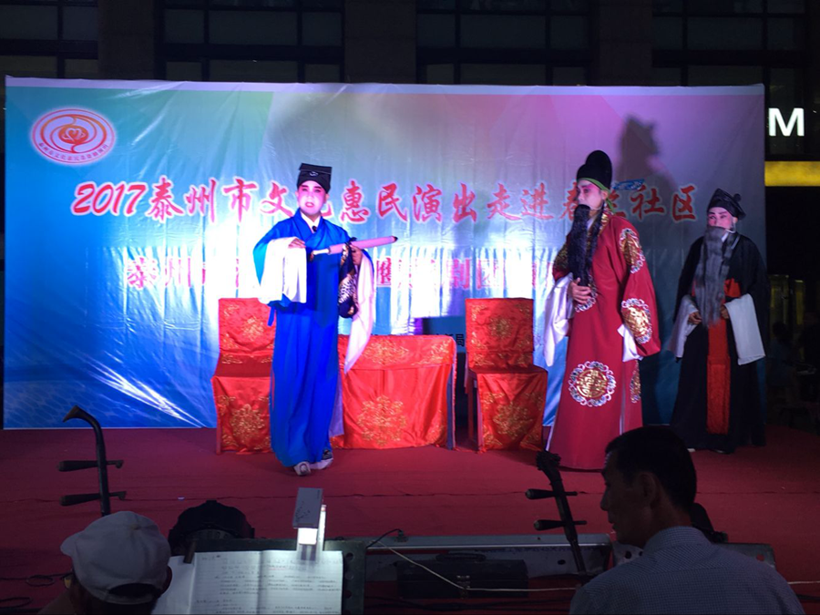 2017泰州市文化惠民演出走进海陵区城东街道春兰社区,海陵区小鹰扬剧团专场演出,2017年5月22日晚上在海陵区城东街道春兰社区尊园华苑广场成功举办。演员们精彩的演出博得了观众的阵阵掌声。演出很成功!感谢社区领导提供全方位的服务!