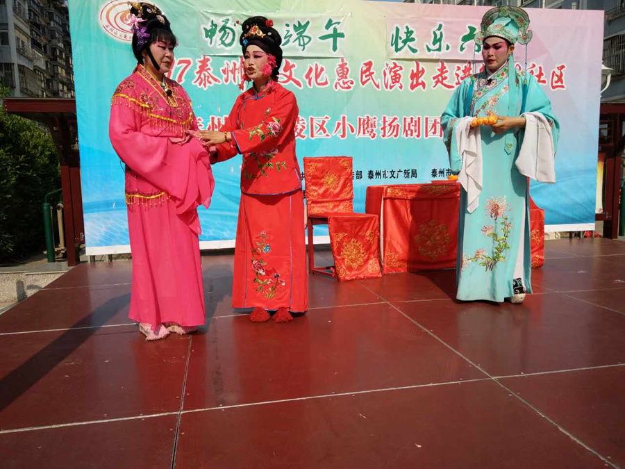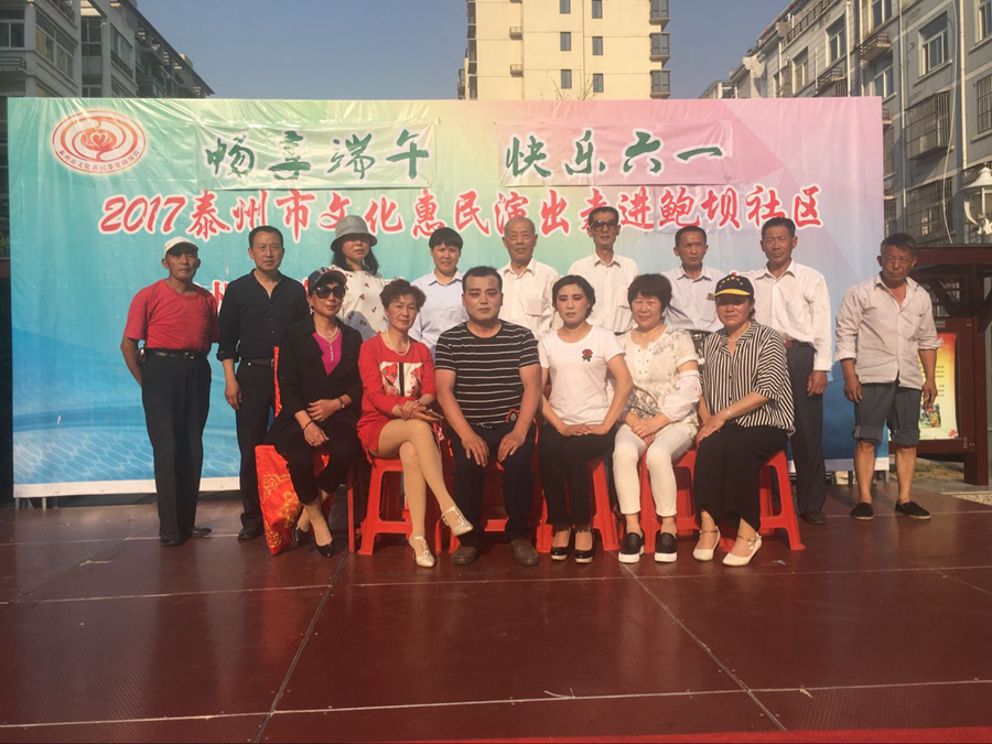 2017泰州市文化惠民演出走进海陵区城东街道鲍坝社区,海陵区小鹰扬剧团专场演出,2017年5月27日晚上在海陵区城东街道鲍坝社区美德善行广场成功举办。经典的扬剧折子戏博得了观众的阵阵掌声。演出很成功!感谢社区领导提供全方位的服务!